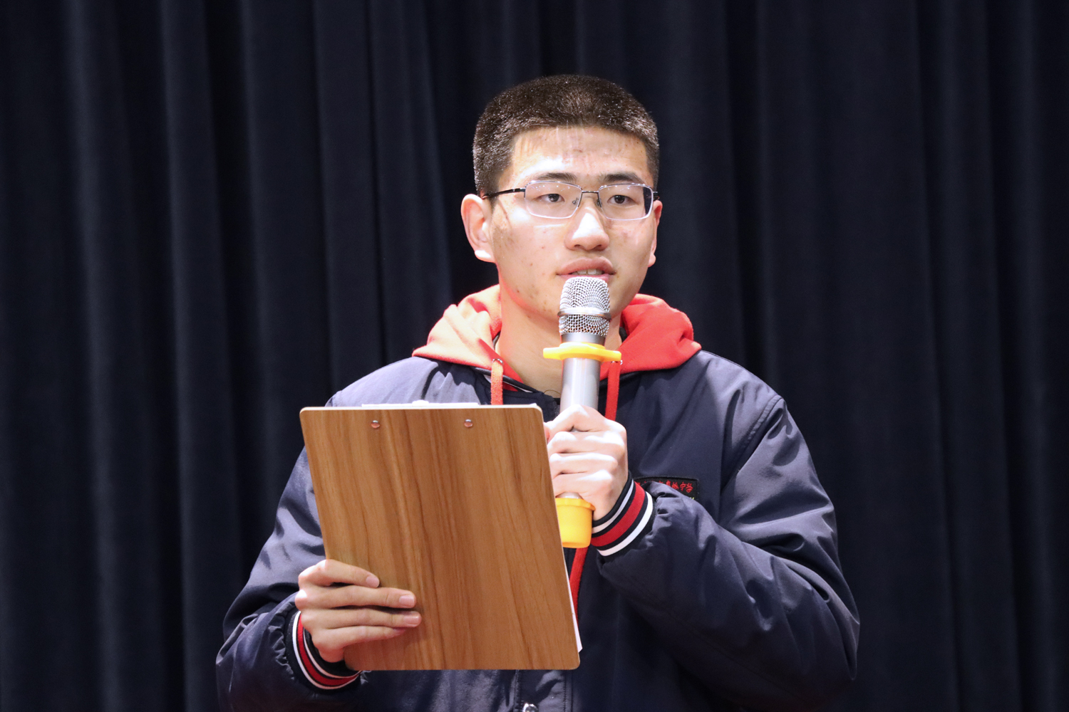 2022年2月27日晚,高一(6)班在奥林匹克楼博雅小剧场举行了“青春有梦 强国有我”主题班会。学校校办主任刘建东、教务处副主任田光宇及各班班主任、学生会宣传部干事、“四自”委员、学生代表、家长代表观摩了此次活动。本周“四自”督查小组相关同学进行了志愿引导和评价记录工作。