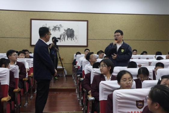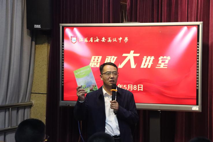 5月8日晚,高一(3)班在奥二楼博雅小剧场举行学习《习近平新时代中国特色社会主义思想学生读本》班会课。安保处副主任张海进、思政课老师代表、班主任代表和各班学生代表参加了观摩活动。