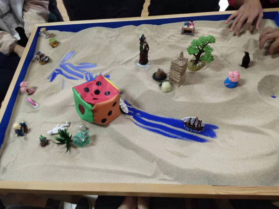 本次活动由孔翠老师带领,她介绍了本次活动的大体安排计划,简要介绍了沙盘的历史由来,并结合具体案例详细介绍了沙盘的使用方法和注意事项。为了增加成员的感性体验,请每位小组成员在众多沙具中选择了更能打动自己内心的沙具一一做了介绍。其中部分成员已经能够通过沙具建立和个人的链接,这也验证了组内的相对安全感,为后续的团体沙盘心理环境的保证做了铺垫。