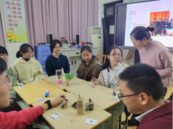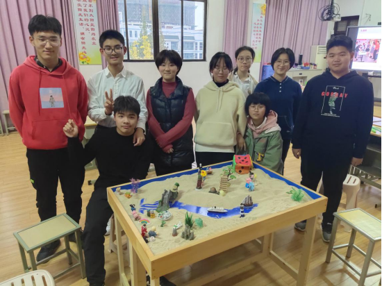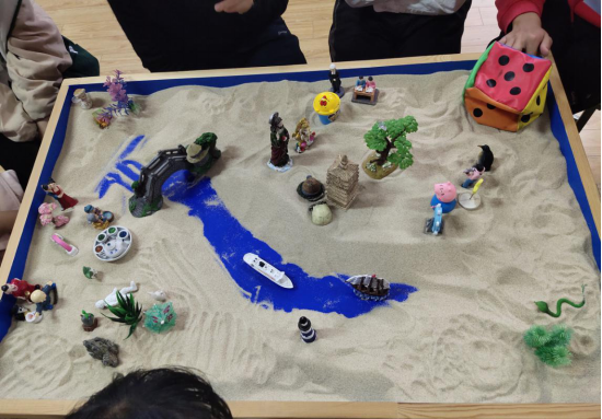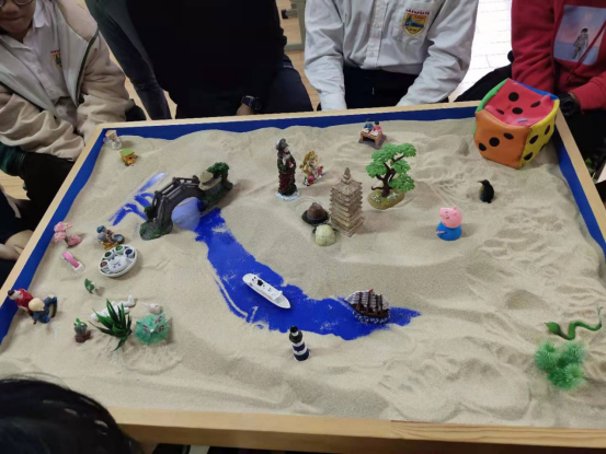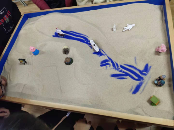 最后,组员根据自己的想法感受分别给首次沙盘命名:“予心以梦”“小世界大不同”“浣署”“婆娑”“y=sin|α+κπ|”“向前的路”“下一生”……正如同一个沙盘不同的人会有完全不同的理解一样,沙世界也是现实世界的缩影,局部会有和谐的部分,也会有个性的表达,我们一方面希望和谐共处,另一方面,对于一些暂时不和谐不成协调的部分也可以允许它的存在,看到个体差异性,并寻踪它,这样我们的世界才更真实,也更温暖。