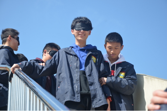 有的同学表示自己做拐杖时感觉自己的队友盲人走得太慢了,但是当自己去体验盲人时发现还挺紧张的,似乎走得要更慢一点。也有同学说刚戴上眼罩时特别紧张,整个人是发懵的状态,但是拐杖一直有很好的指引,所以后半程是比较放松的。还有的同学表示,做盲人的时候,自己的同伴非常地仔细,不断小声提醒自己前方路况,甚至帮助自己数台阶,非常感动,感谢同伴的支持。