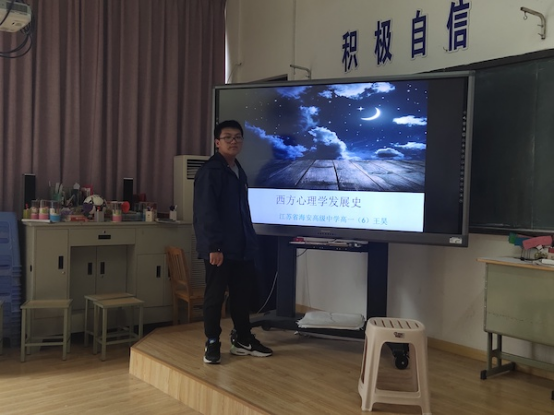 高一6班的王昊同学分享了《西方心理学发展史》。他从古希腊罗马时期开始介绍,对不同时期的心理学的思想、特点做了回顾,他认为这部分内容是有一些晦涩的,其实有大量的人物以及相关的理论值得探究。对于未来想要更加专业系统的学习心理学的同学来说,这是很重要的部分。