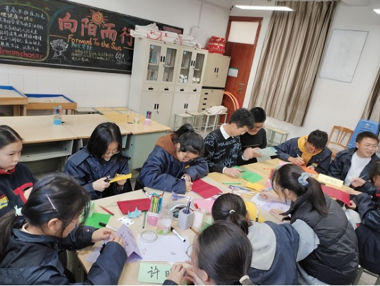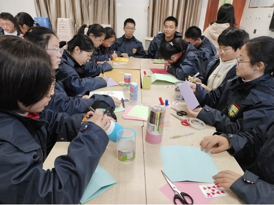 第一个活动是“我和我们”。活动内容是每个人做一个属于自己的姓名牌并向大家介绍一下自己的姓名牌。每个同学都选了一个自己喜欢的卡纸,随后我们就开始了自己的创作。我先将卡纸对折再对折,然后将它卷成三棱柱的形状并在其中的两面写上自己的名字。我又在上面画了一些图案进行装饰,写了我的兴趣爱好。我环顾四周本想看看大家的姓名牌是怎么做的,但所有人都在非常认真地制作,所以我也就继续自己的创作。到了展示时间,每个同学都对自己独一无二的姓名牌进行解说。有的同学在上面写了自己喜欢的明星,有的折了玫瑰花贴在上面,有的……通过这个活动,我们对彼此更加了解,队员之间更加熟悉。