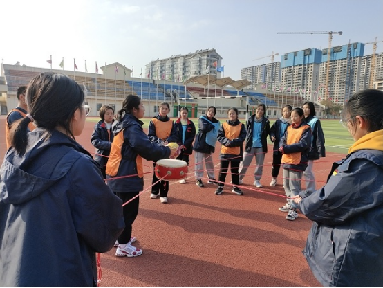 最后一个活动是“鼓动人心”。规则是在鼓的周围系上绳子,每个成员拉住绳子的一端,然后用鼓去颠球,在一分钟内颠球次数多者获胜。我们先观察了另一组的方法,发现他们每次只能颠一个,所以到我们的时候,我们就进行了一些改进,能一下颠2个。最终在我们的齐心协力下,我们队获胜。