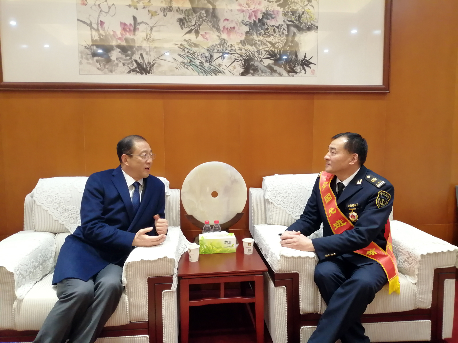 宣讲活动结束后,全国先进工作者、学校党委书记、校长吕建与姜新劳模亲切交流,介绍了学校在“德智体美劳”等各个方面的办学情况,并陪同姜新劳模参观了海中校园。