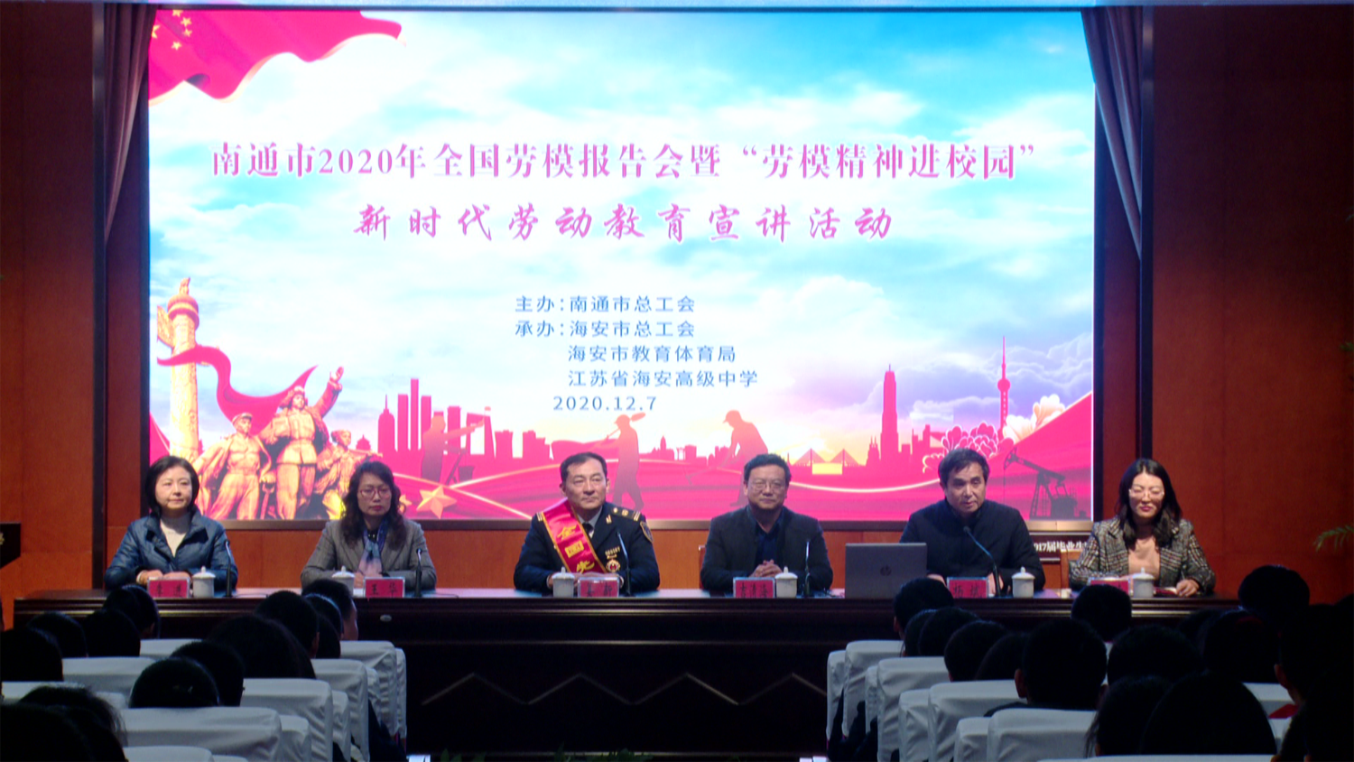 “劳模精神进校园”新时代劳动教育宣讲活动在海安中学隆重举行