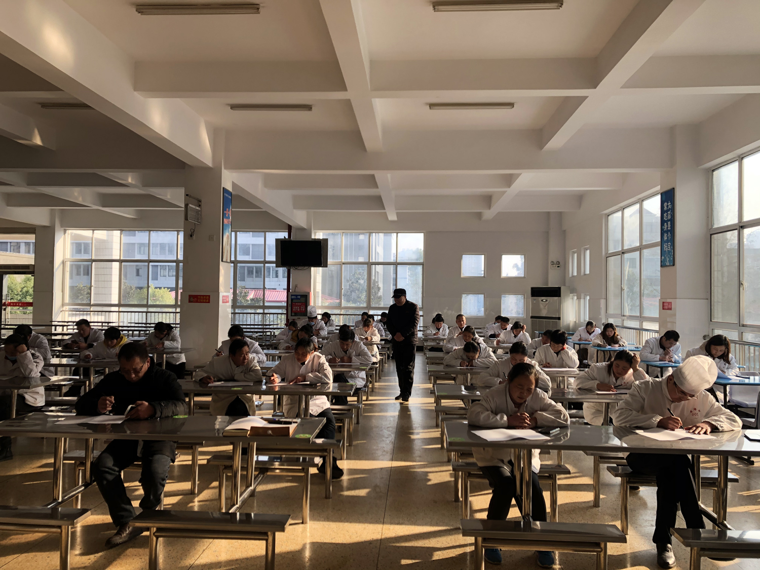 接着总务处副主任吴斌组织食堂员工学习了《餐饮服务食品安全操作规范》、《海安市学校“阳光食堂”建设管理指南》等系列法律规范,并进行了理论现场考核。