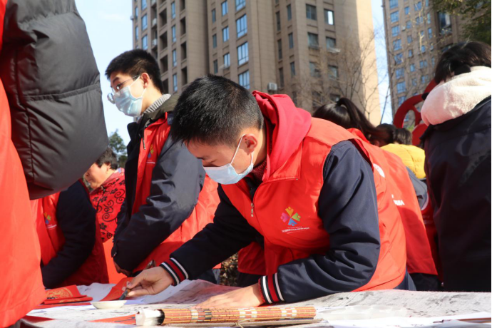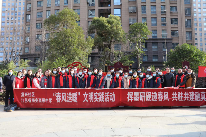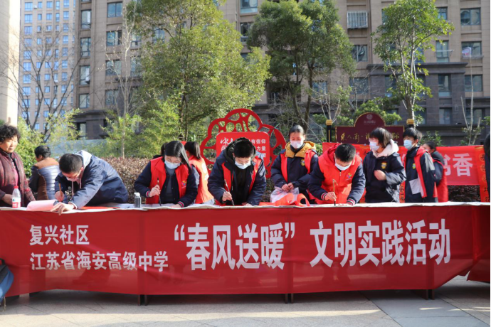 2021年2月2日,江苏省海安高级中学联合驻地复兴社区举办了新春送春联活动,此次活动是海安中学党委“春风送暖”系列文明实践活动之一。