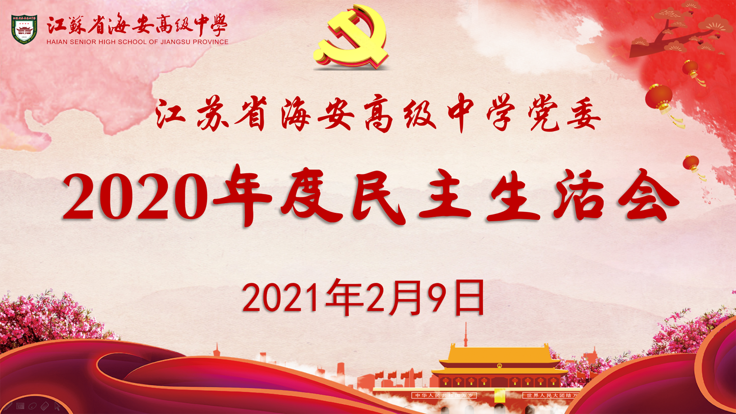 江苏省海安高级中学党委召开2020年度民主生活会