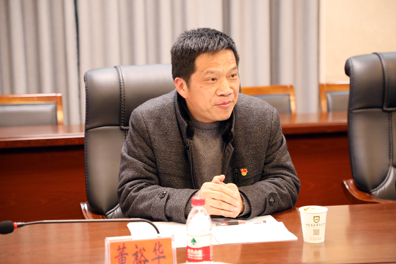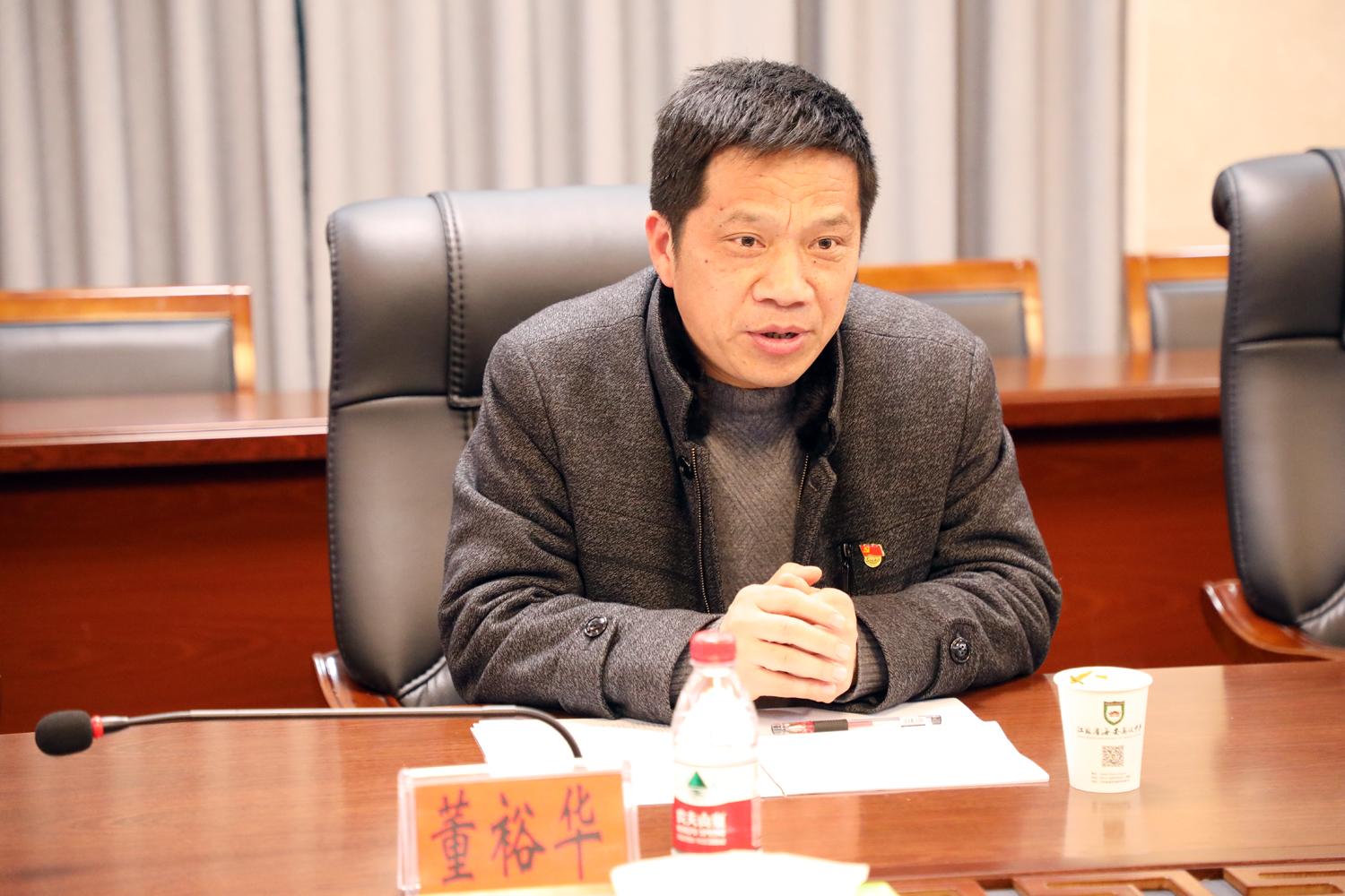 会议主持人,学校党委委员、副校长董裕华通报会前准备情况