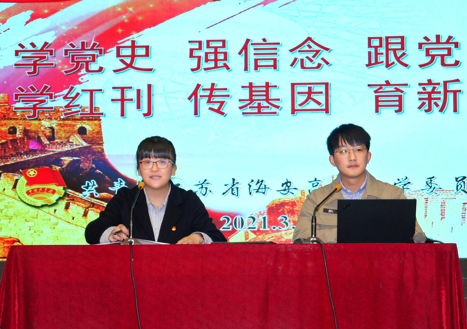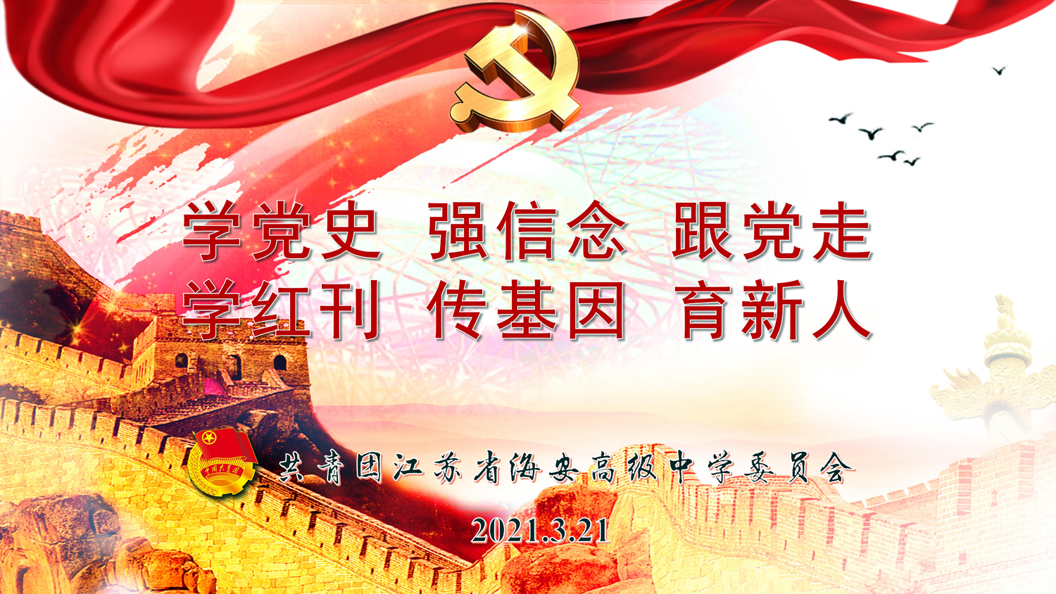 读史使人明智,鉴古方能知今。为使青年一代坚定信念跟党走,继承和发扬光大革命传统、党的优良作风,提高自己的认识能力和处理实际问题的能力,3月21日下午,海安中学开设“学党史 传基因 育新人”专题团课,高一年级全体团校学员参加了此次学习。本次团课由学校团委书记许尧主持,校长办公室副主任、高三历史备课组组长刘伟主讲。