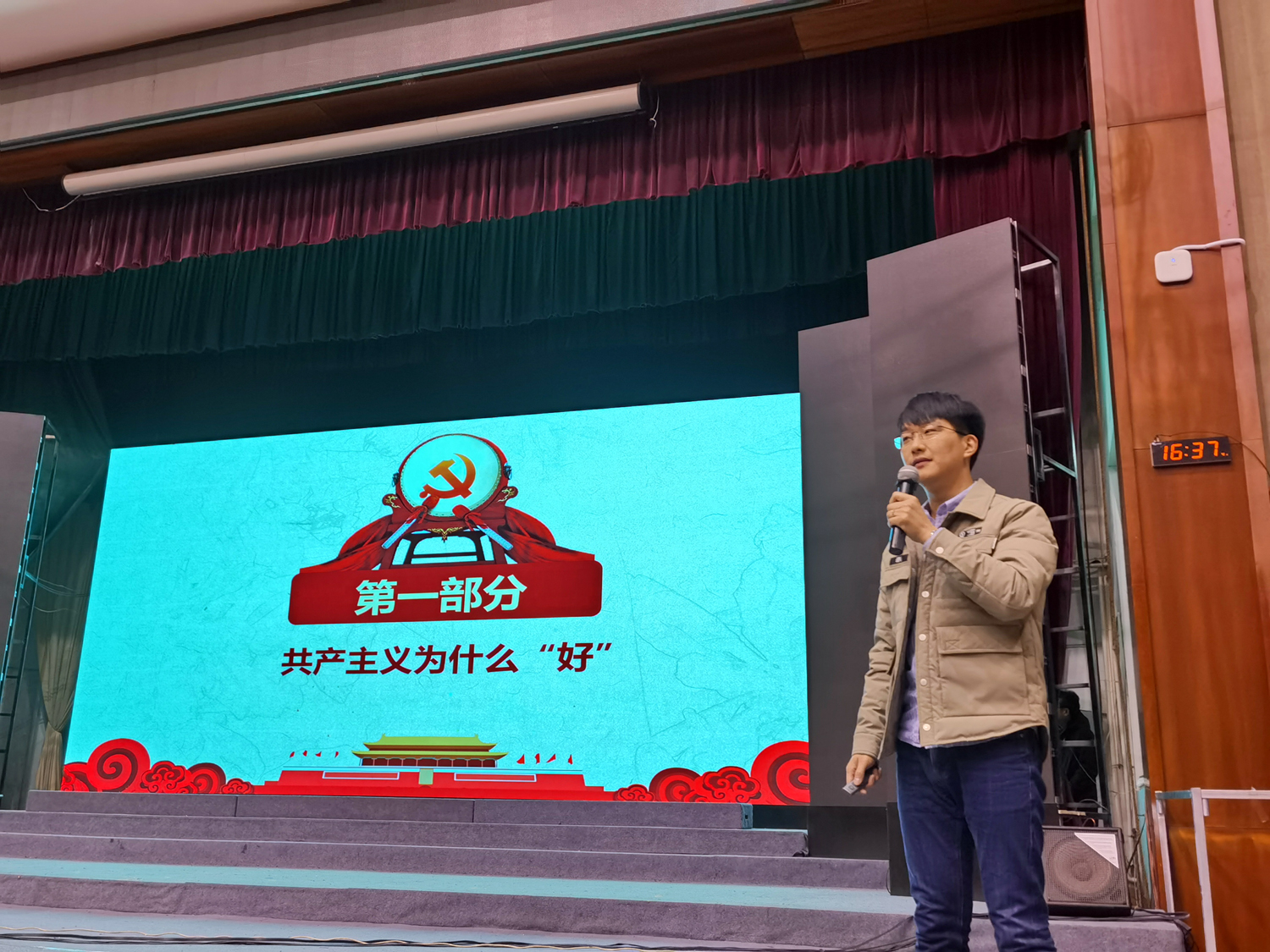 随后,刘伟从“共产主义为什么‘好’”和“中国共产党的成功密码”两方面,带领同学们进行了学习。通过观看视频、党史油画分享等方式,援引大量丰富而翔实的史料,带领大家走进百年党史中最鲜活、最生动的部分,梳理了我们党百年来艰辛的奋斗历程。夏明翰、赵一曼、张朝燮、王经燕……为革命事业抛头颅洒热血的烈士们的事迹,让大家深刻感悟党员“用鲜血铸就的信念与忠诚”;嘉兴红船、遵义会议、秋收起义……在共和国建立过程中我党的砥砺前行,让大家深入理解我党“超强的自我纠错能力”。