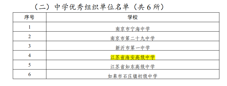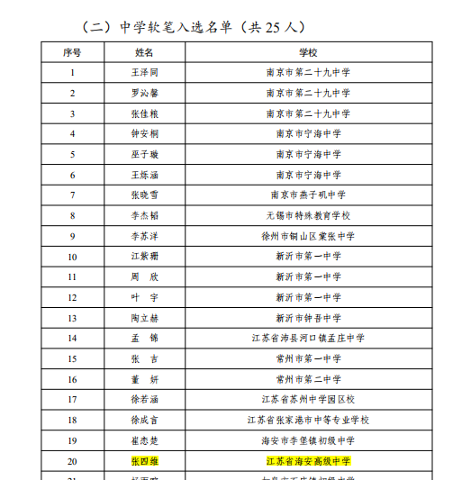 近日,江苏省教育厅组织的2020年“苏乡永助”主题活动评选结果已公布,我校三名同学的书法作品入选了“主题书法活动优秀作品”名单,海安中学被评为“优秀组织单位”。