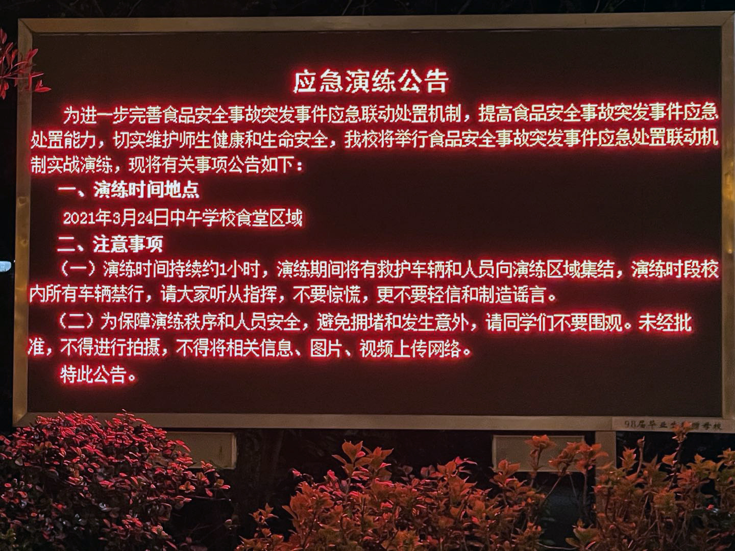 ↑ 应急演练公告