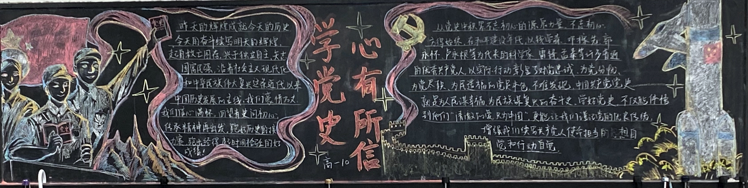 活动期间,各班学习小组紧紧围绕主题搜集材料,精心编排,板报内容丰富,主题突出,图文并茂,布局美观。一幅幅画面精美、内容充实的板报作品,汇集了各班学生的集体智慧,锻炼了他们学习实践的能力,也激发了大家学习党史的热情。