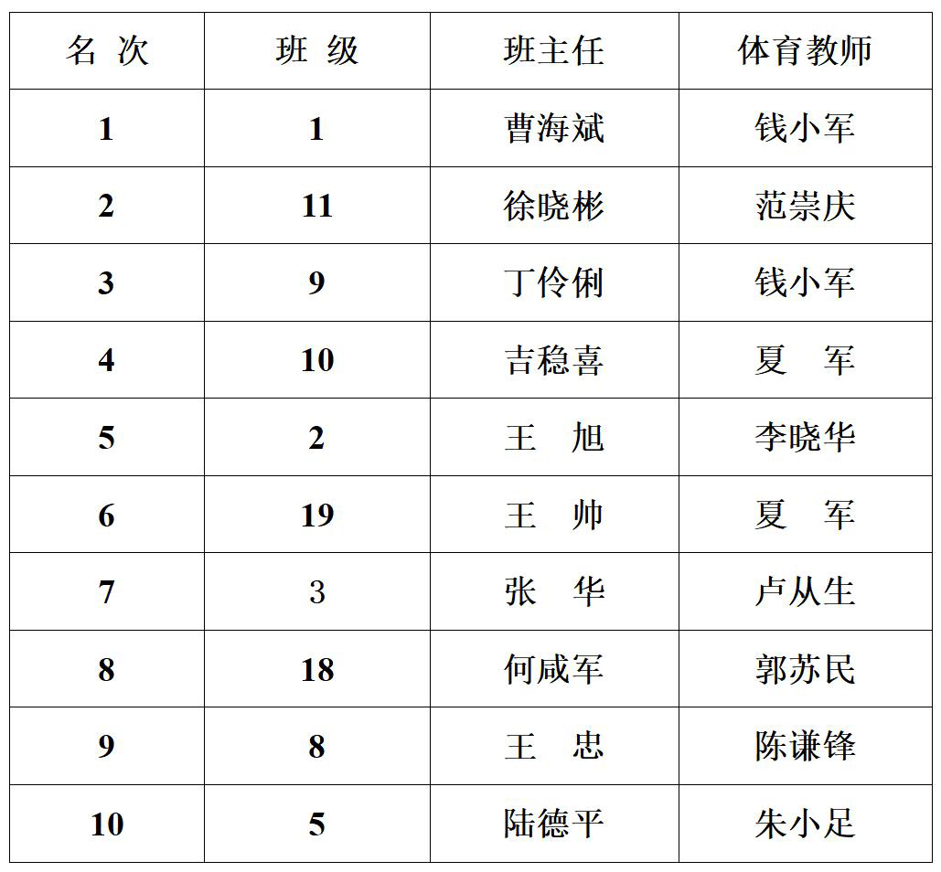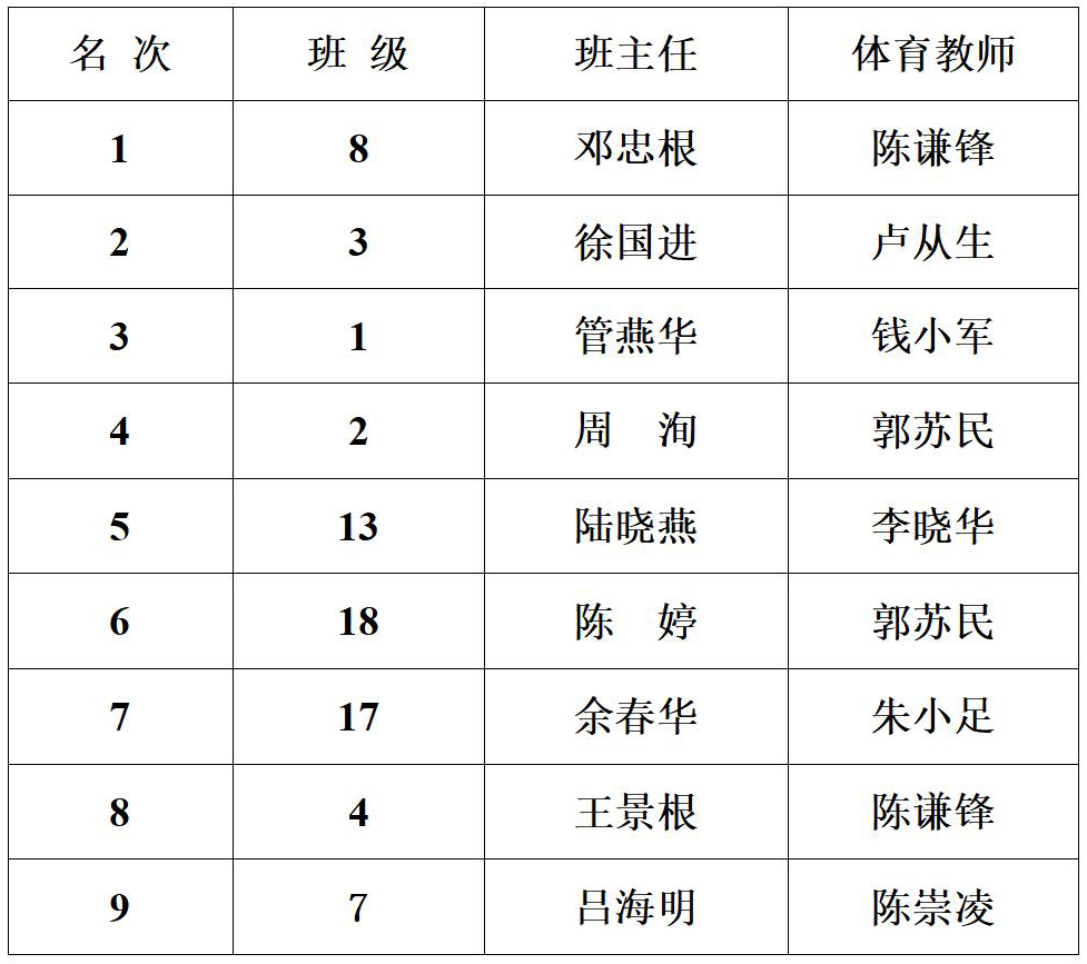 海安中学举行2021年“迎五一”跑操比赛 来源:德育处 发布时间:2021-04-25 00:00:00 浏览次数: 次 【字体:小 大】 2021年4月24日上午,海安中学举行了各年级“迎五一”跑操比赛。赛前抽签决定比赛出场顺序。本次比赛现场评委均由各年级推荐的优秀学生担任,学校领导到场指导。经过激烈的角逐,以下班级获得了流动红旗:高三年级: 高二年级: 高一年级: 精彩图集 分享到: 【打印正文】