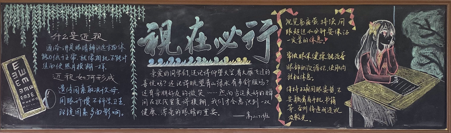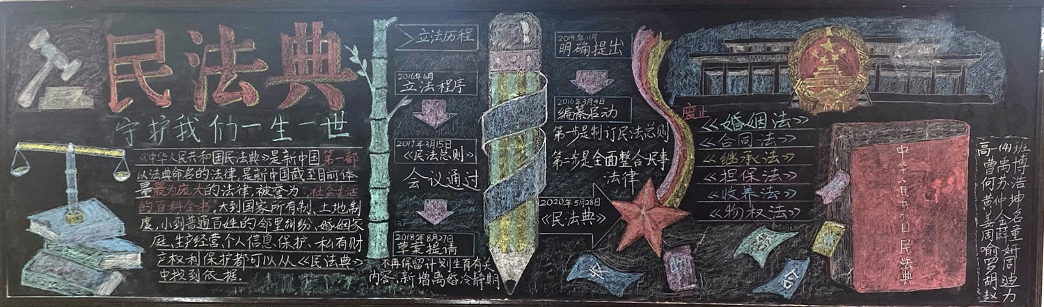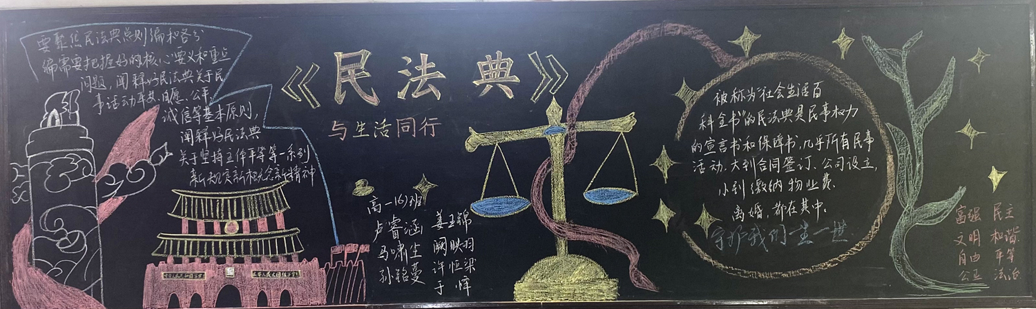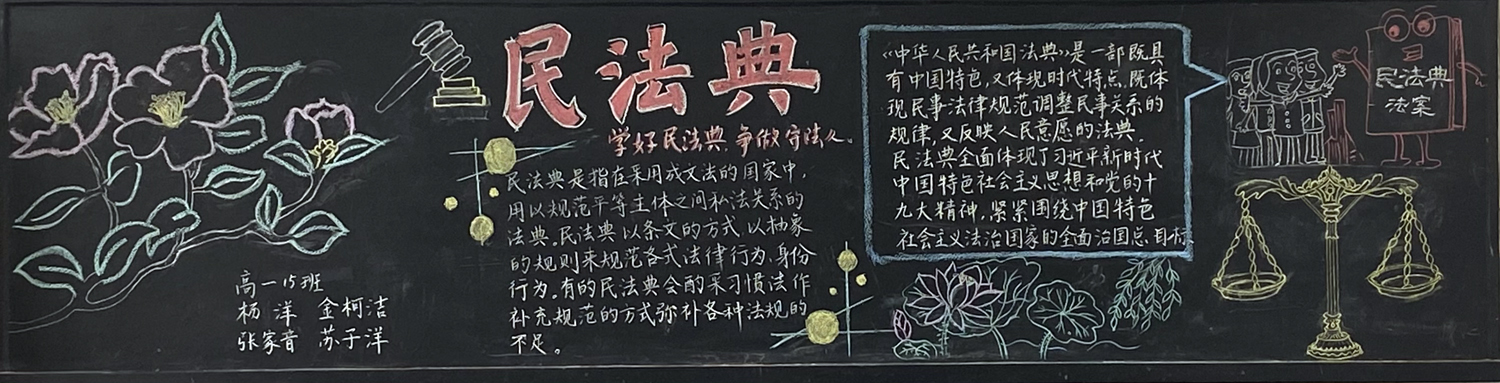为进一步做好校园文化和班级文化建设,海安中学高一年级开展了以“民法典,与生活同行”为主题,高二年级开展了以“预防近视,保护视力”为主题的黑板报评比活动。