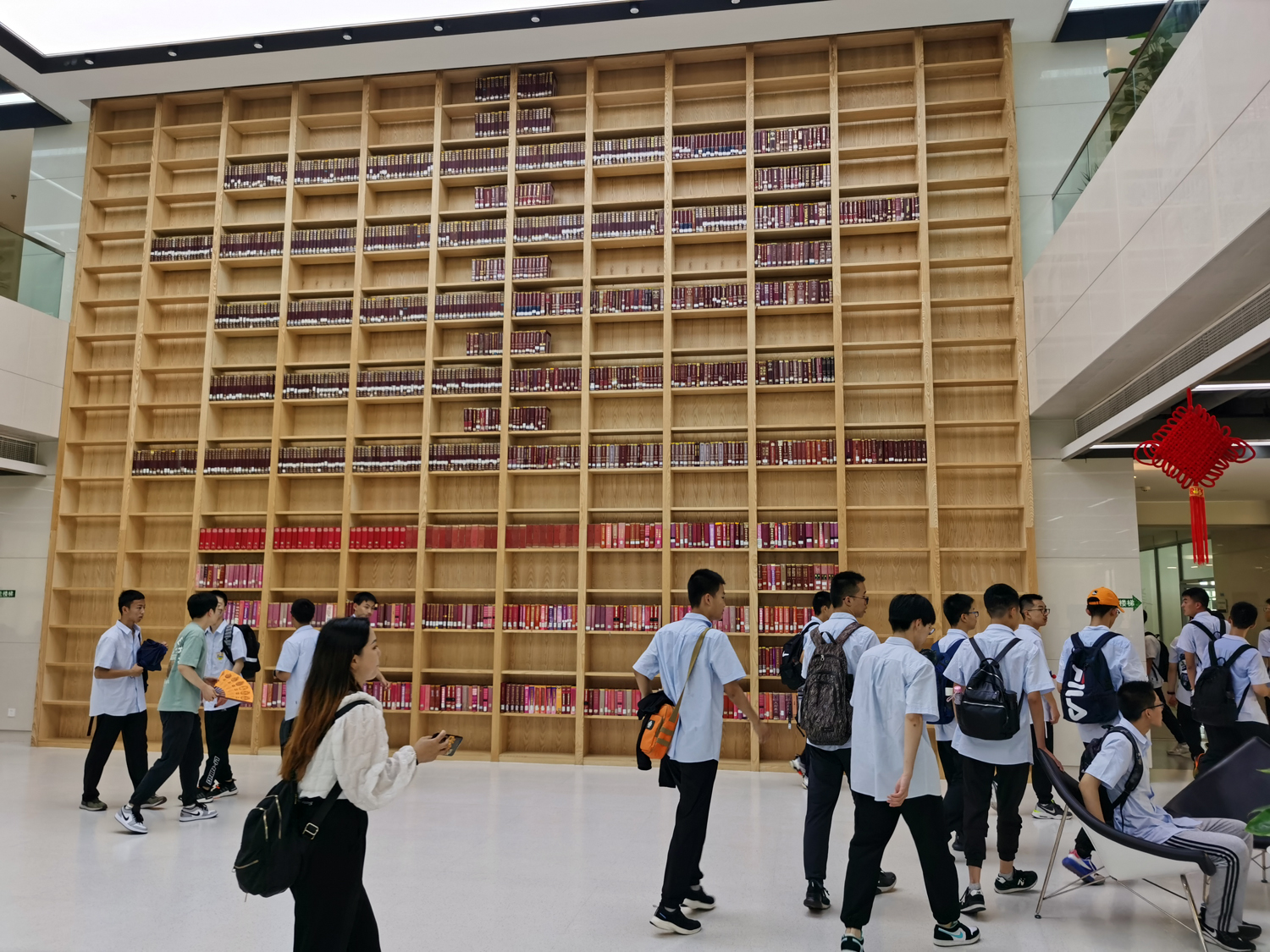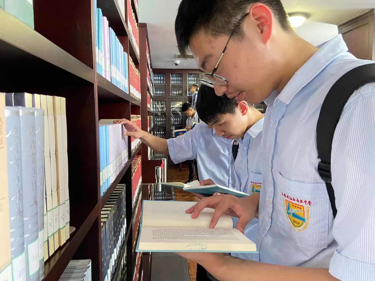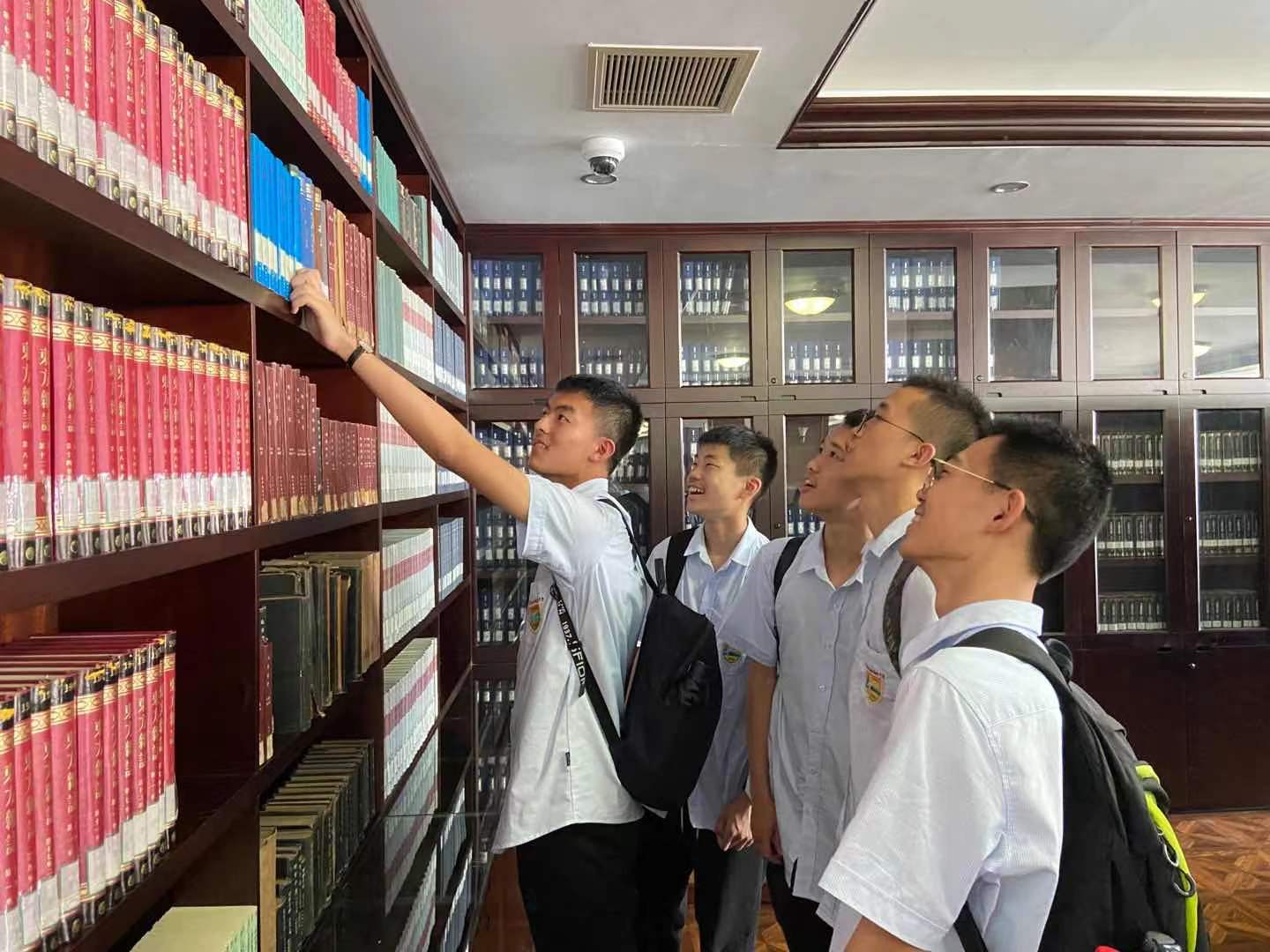 9点之后,学生前往图书馆。可以对话的智能机器人在入口处迎接着孩子们。而图书馆内,迎接他们的不仅是琳琅满目的珍贵书籍,还有各种精彩纷呈的电子资源,展示着人类博大广远的精神世界。孩子们如同走进一座神秘花园,有的用手摩挲封面,有的紧张的摘抄,有的凝神思考,大家沉浸于心灵的家园,不觉时间的流逝。抬头仰望这座巨大的精神宫殿,不禁让人想起莎士比亚的名句——“这个覆盖众生的苍穹,这一顶壮丽的帐幕,这个金黄色的火球点缀着的庄严的屋宇……多么高贵的理性!多么伟大的力量!”