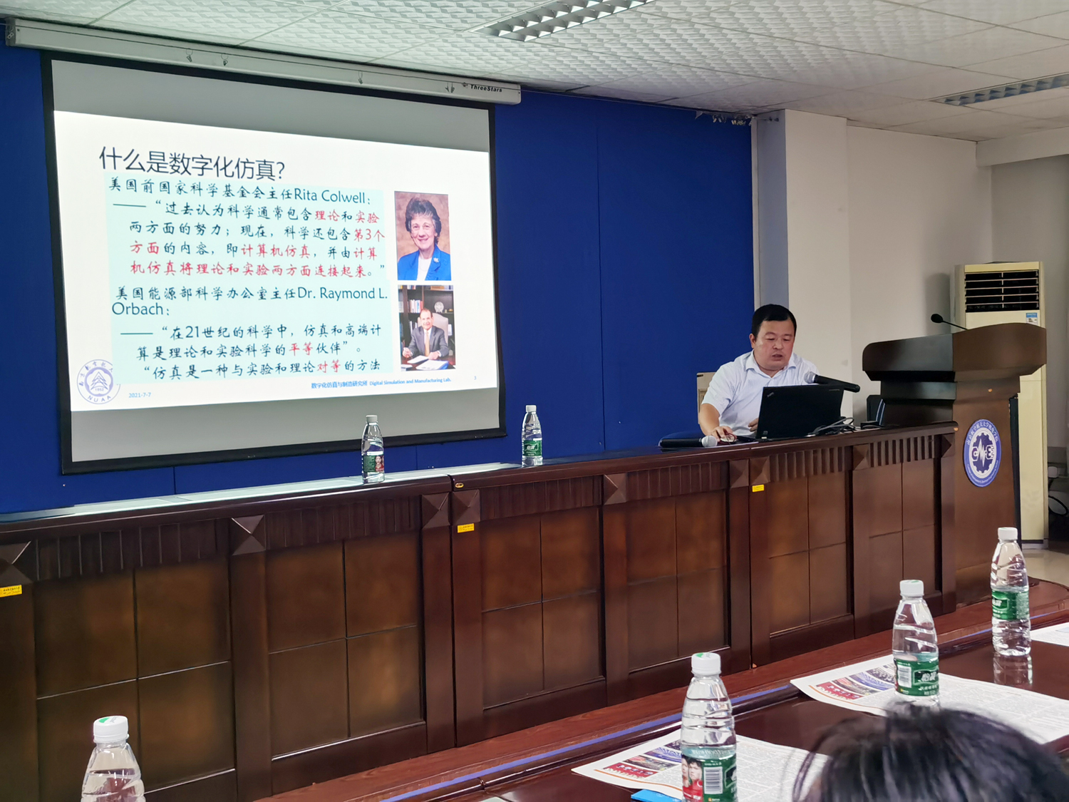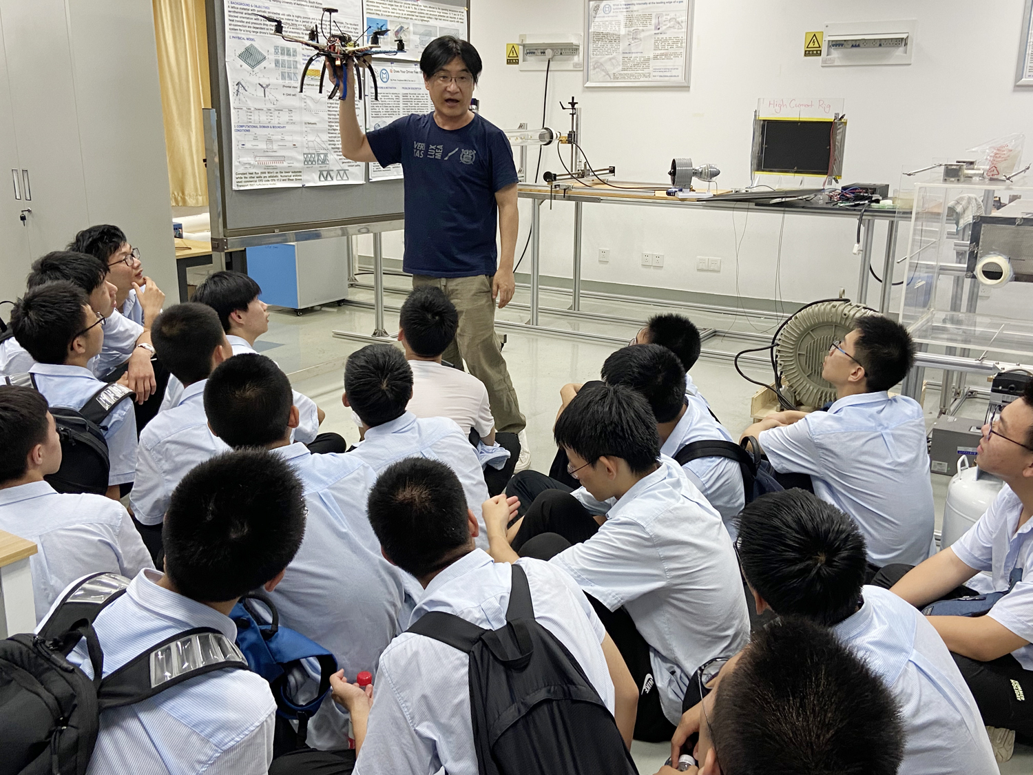 南航的最后一站,同学们聆听了鲍益东教授的学术讲座“数字化仿真技术在航空制造中的应用”。鲍教授用《曹冲称象》的故事,用生活中大桥共振,汽车行驶等接地气的现象,科普数字化仿真技术,讲座在热烈的掌声中结束,同学们带走的,是浓厚的科研热情和深刻的生命思考。