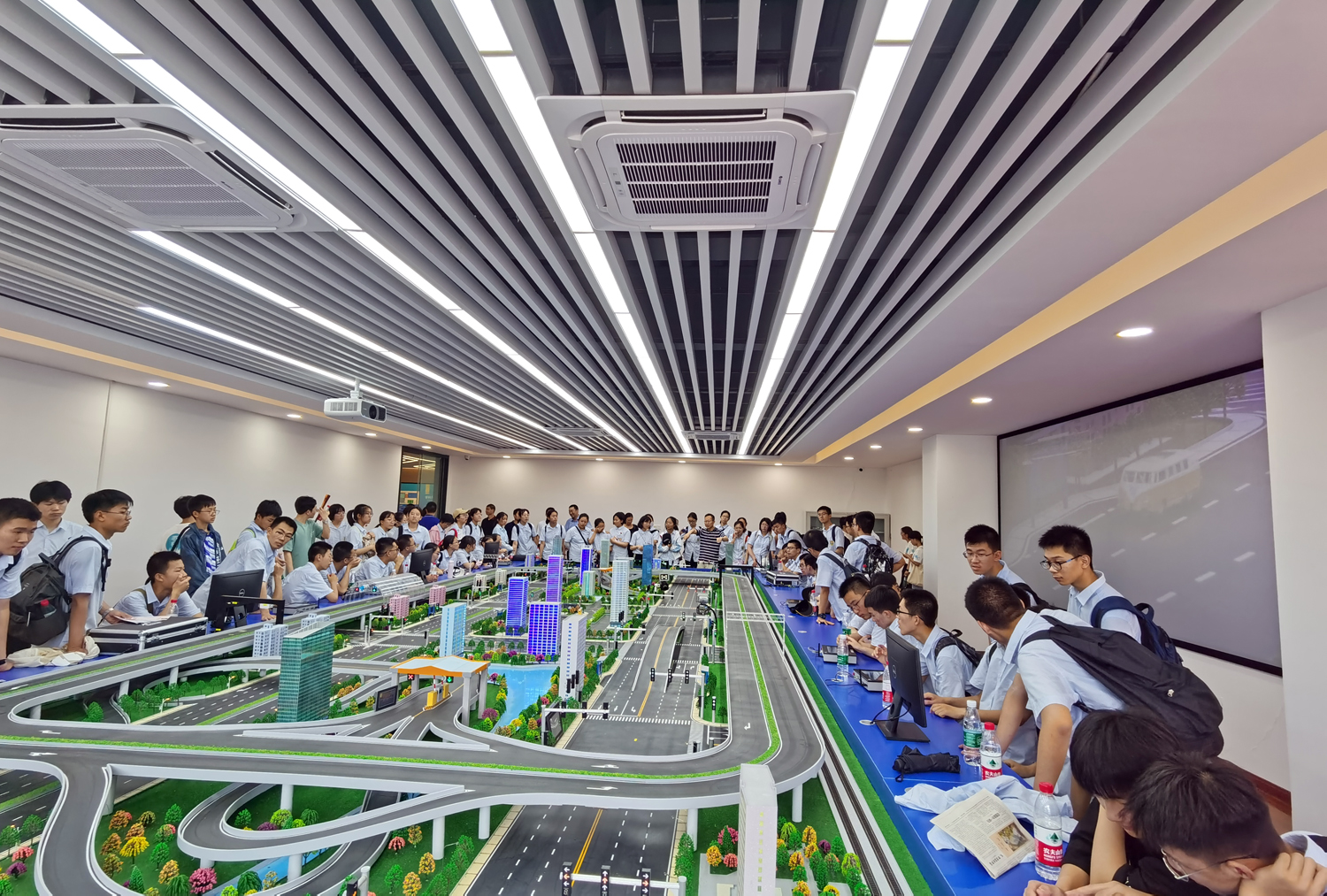 上午10点,孩子们走进了东大交通学院。通过虚拟驾驶、模拟调控等实验,大家认识到,红绿灯、车辆行驶、道路调整,这些在他们眼中平常不过的日常场景,其实隐藏着高端科技和科技工作者孜孜不倦的努力和奉献,“看似寻常最奇崛,成如容易却艰辛”。同学们感慨,立足生活,用科技的力量和诚挚的爱,让人们的生活变得更加自由与幸福,这也是一种诗和远方。