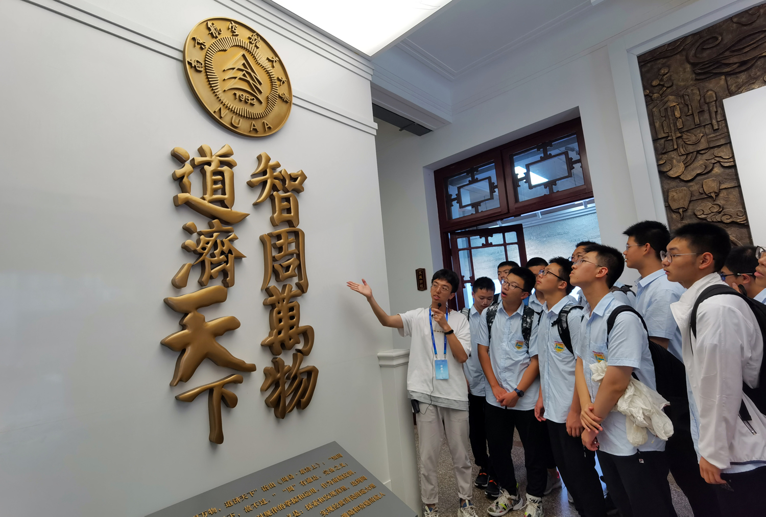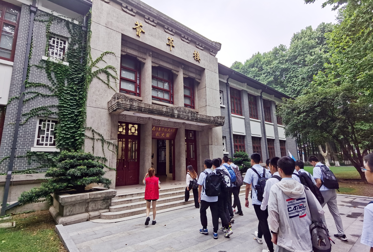 中午,雷雨忽至,电闪雷鸣,但是,什么也无法阻挡学子们的研学之途,下午一点半,大巴抵达南京航天航空大学。