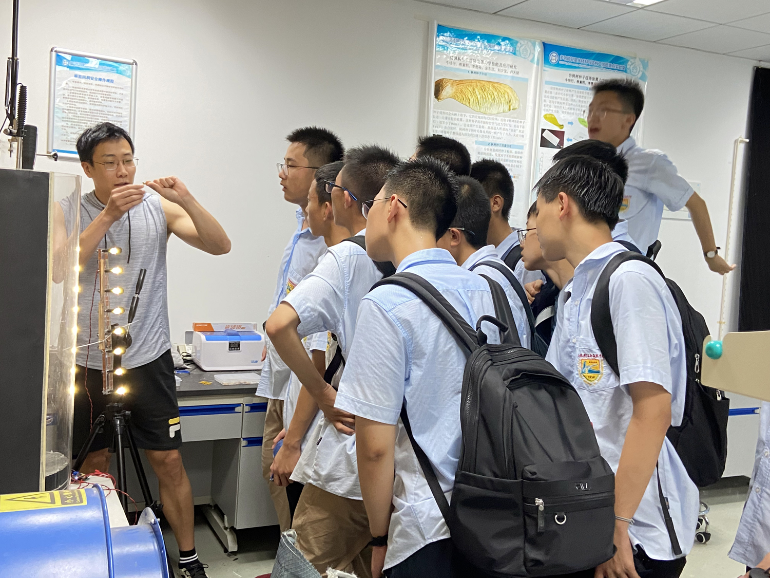 在机械结构力学及控制国家重点实验室里,同学们看到了新型材料的研制成果,也仔细观察了各种自主研发的发动机,其中有一些发动机被用于“天宫一号”“嫦娥五号”之中,同学们与中国航天的伟大成就实现了零距离的接触,同时,也将科学使命,时代追求植入了自己的心灵。