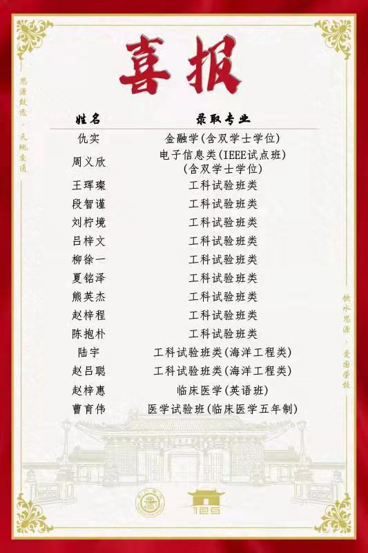近日,上海交通大学向我校发来喜报,祝贺我校仇实等15名同学进入上海交通大学继续深造,同时感谢我校对上海交通大学长期的信任与支持,感谢我校源源不断为交大输送优秀生源。