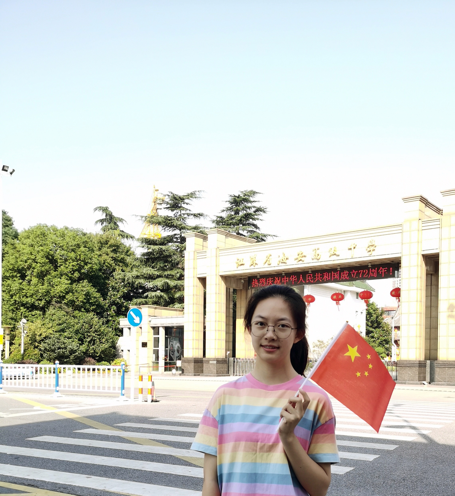 为加强青少年“四史”学习教育,引导广大未成年人知史爱党、知史爱国,学校德育处、团委组织同学们积极参加江苏文明网于国庆期间集中开展的“向国旗敬礼”网上签名寄语活动和“我与国旗合个影”主题活动,向伟大的祖国祝福、向鲜艳的国旗敬礼,增强民族自豪感。同时鼓励同学撰写“礼赞国庆”主题文章,表达对于祖国的热爱与深情。