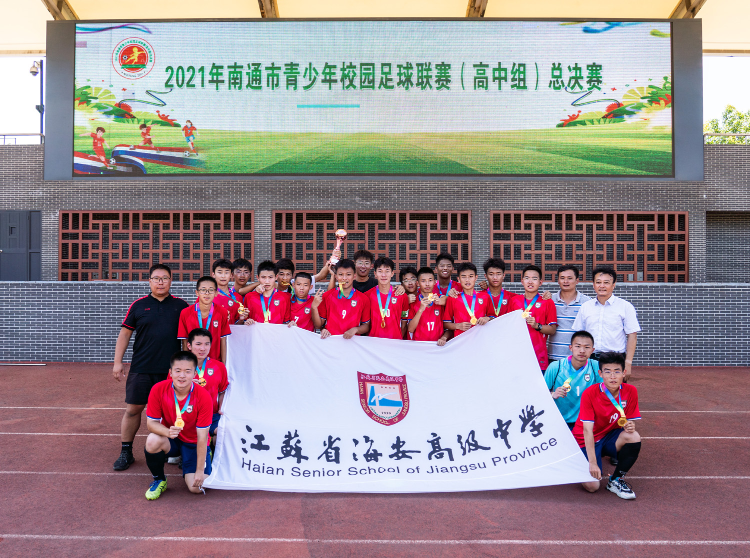 海安中学是全国首批校园足球特色学校,校园足球是学校体育的传统优势项目。作为江苏省高品质示范高中首批建设立项学校,海中把足球、三门球、篮球、田径、游泳、乒乓球等运动项目作为提升学生综合素质的重要课程,积极践行体育育人。此次获得南通市青少年校园足球联赛总冠军,是学校高度重视体育工作、全力推进素质教育的成果体现。