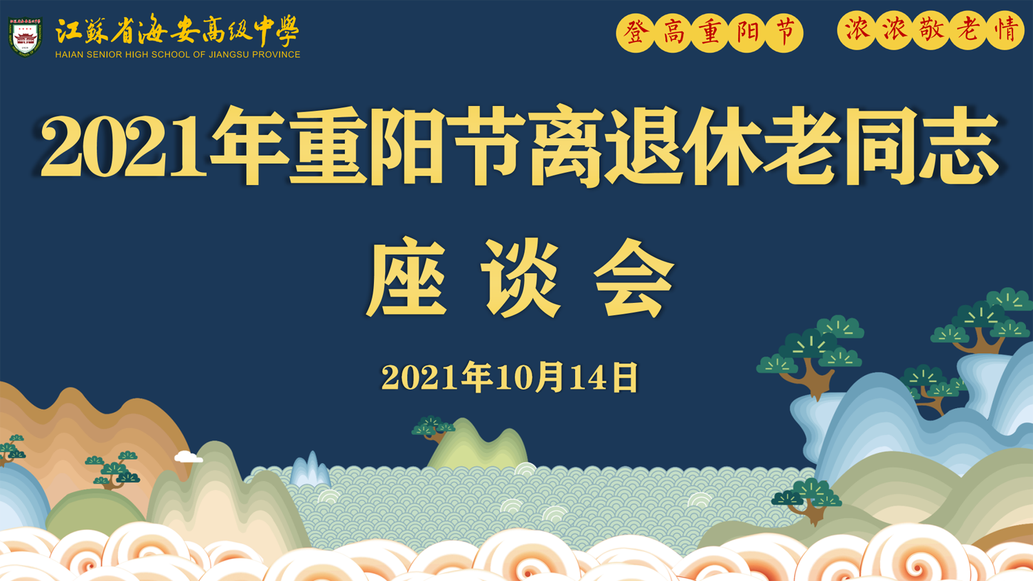 10月14日,佳节又重阳,海安中学在奥林匹克楼第一会议室举行了2021年重阳节离退休老同志座谈会。学校党委书记、校长吕建与一百余名离退休老同志共话学校事业的新发展,共度尊老爱老的重阳节。座谈会由退教协理事长吉传勇主持。