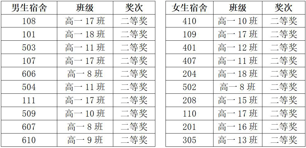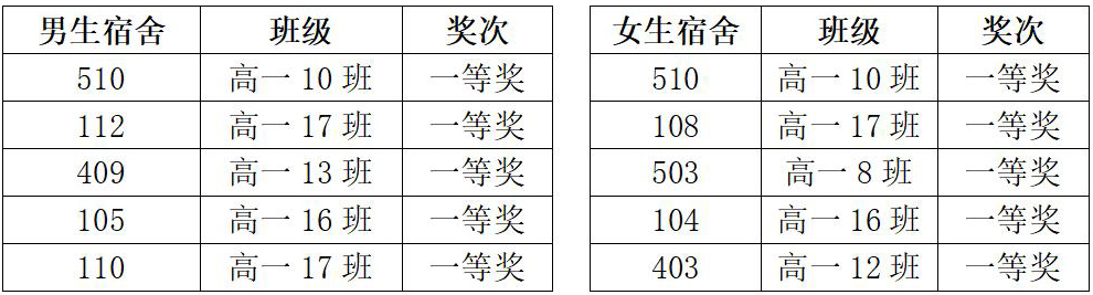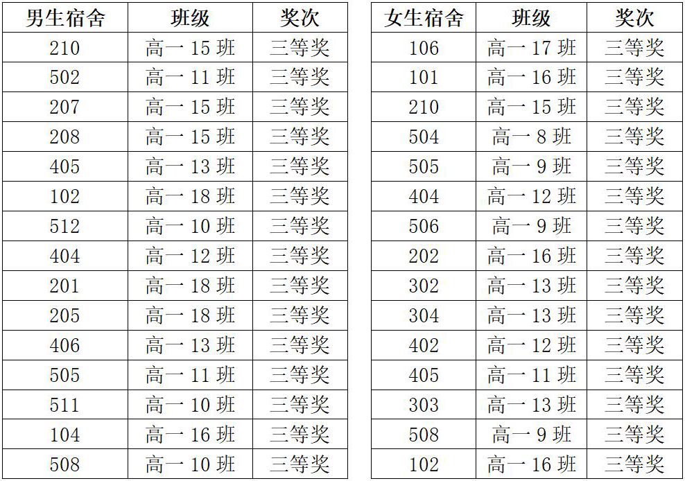 经评委老师及各班学生代表评分,以下宿舍获奖: