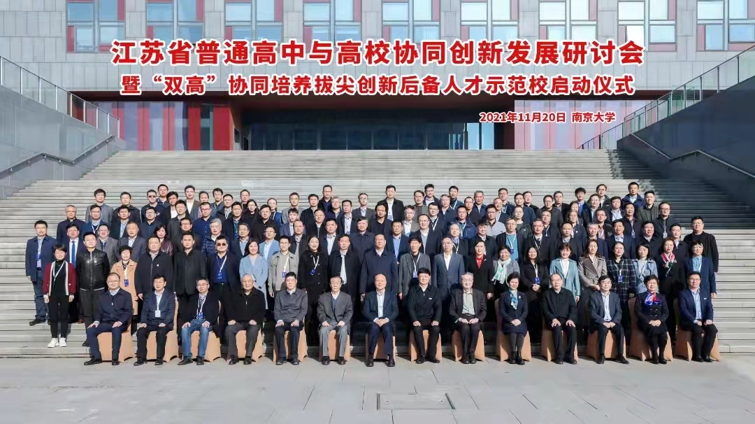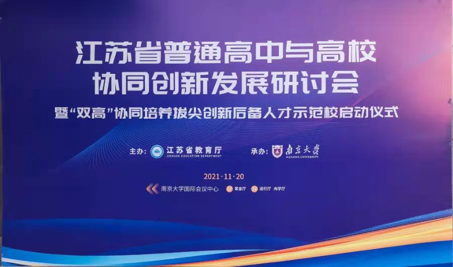 为积极探索普通高中与高等学校协同培养人才的模式改革与创新,加快培养一批新时代拔尖创新后备人才,有力推动江苏基础教育高质量发展。11月20日,由江苏省教育厅主办、南京大学承办的江苏省普通高中与高校协同创新发展研讨会暨“双高”协同培养拔尖创新人才示范校启动仪式在南京大学国际会议中心举行。教育部原副部长、江苏省政府原副省长、国家基础教育教学指导委员会主任委员王湛,南京大学党委书记胡金波,江苏省教育学会会长朱卫国,江苏省教育厅副厅长顾月华等领导出席会议。