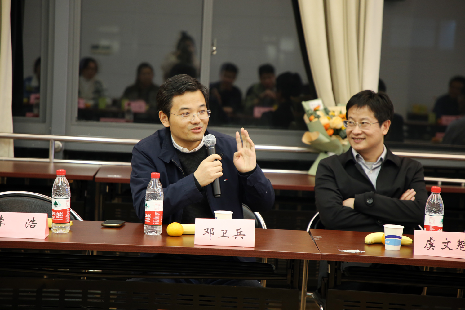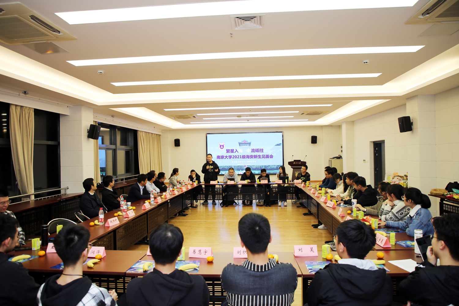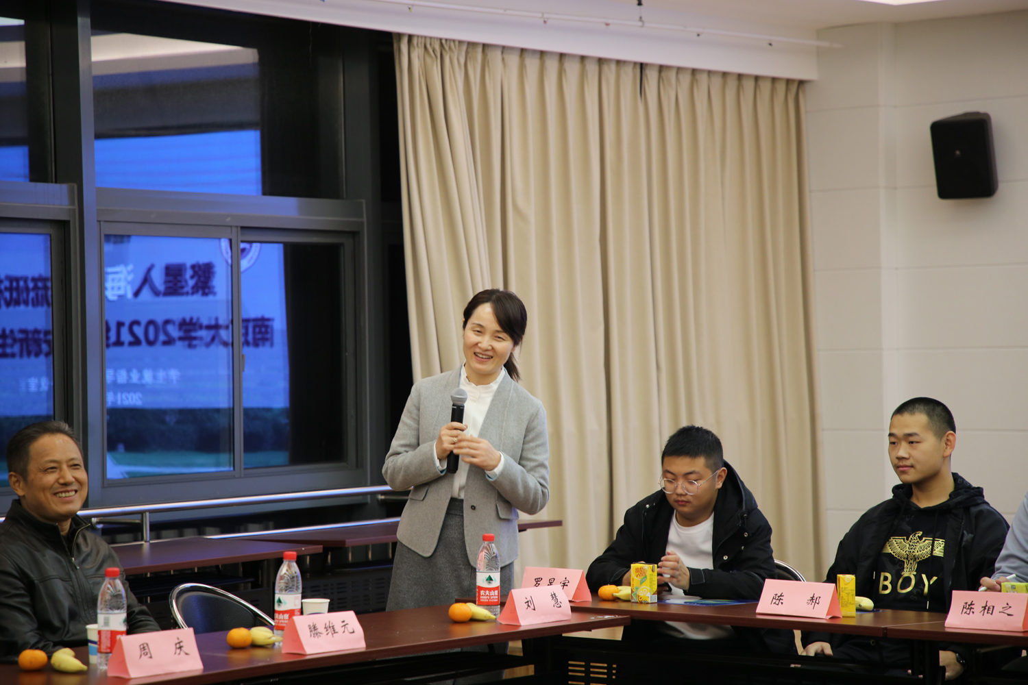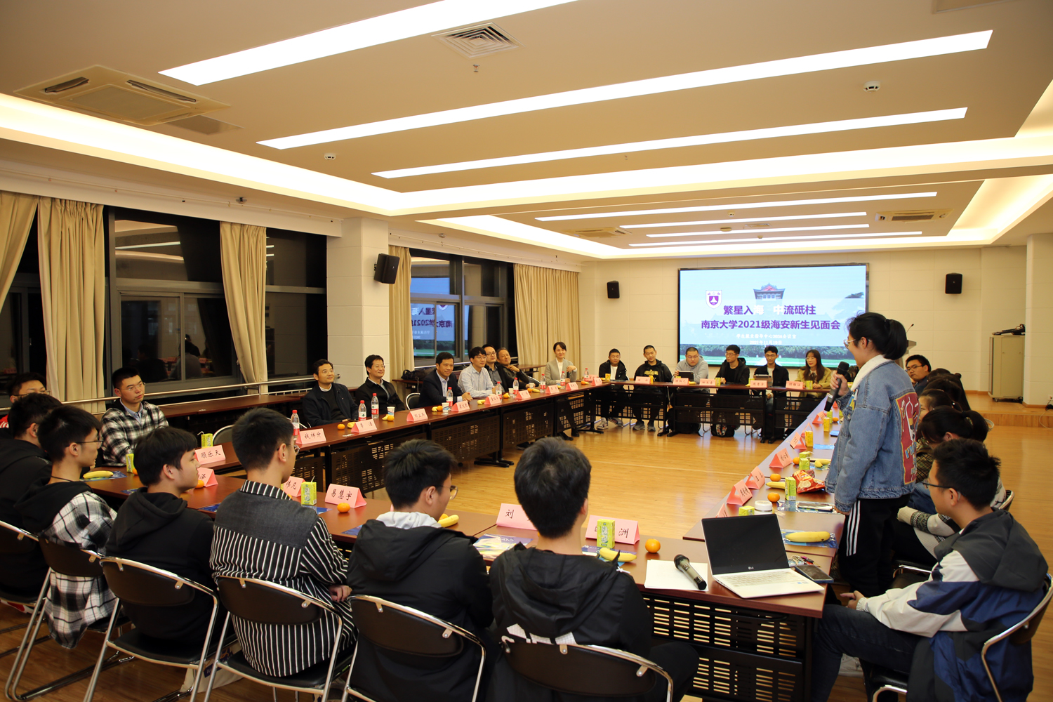 会议期间,在南京大学学生就业指导中心副主任刘慧的组织协调下,海安中学党委副书记、副校长董裕华,办公室副主任刘伟与今年考入南大的海中校友座谈交流。