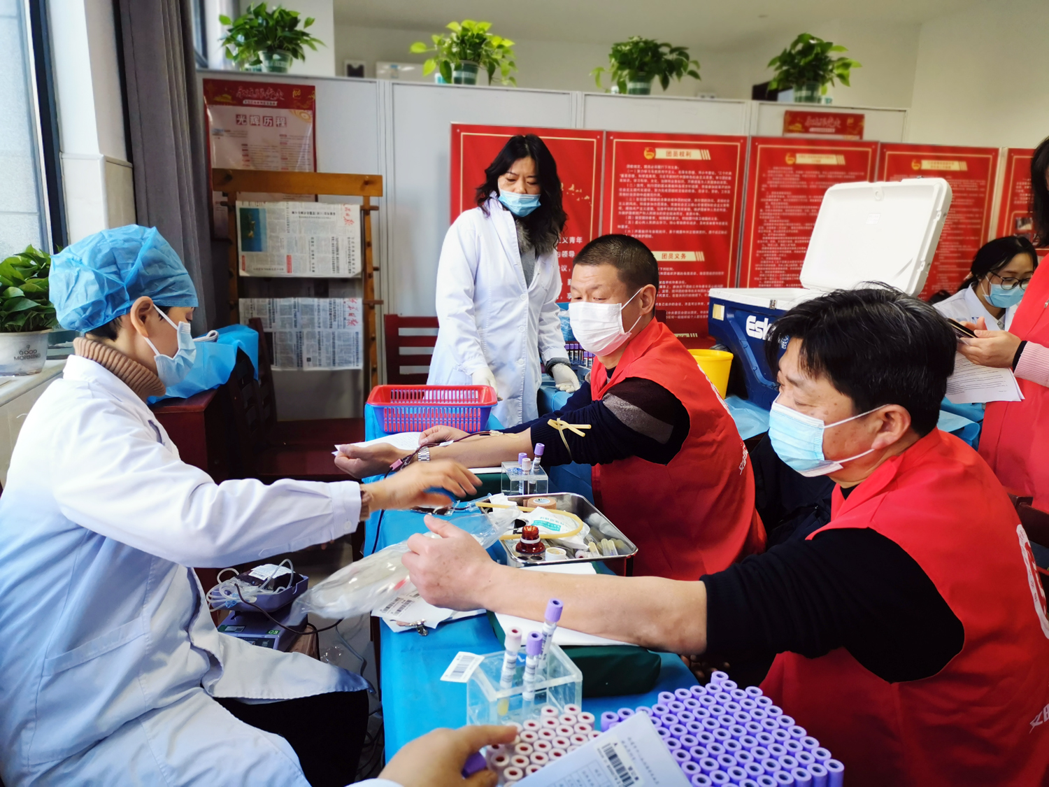 三个多小时里,60多位志愿者井然有序地完成了登记、复核、验血、采血的献血流程,51位志愿者通过体检初筛,总计献血15250毫升。