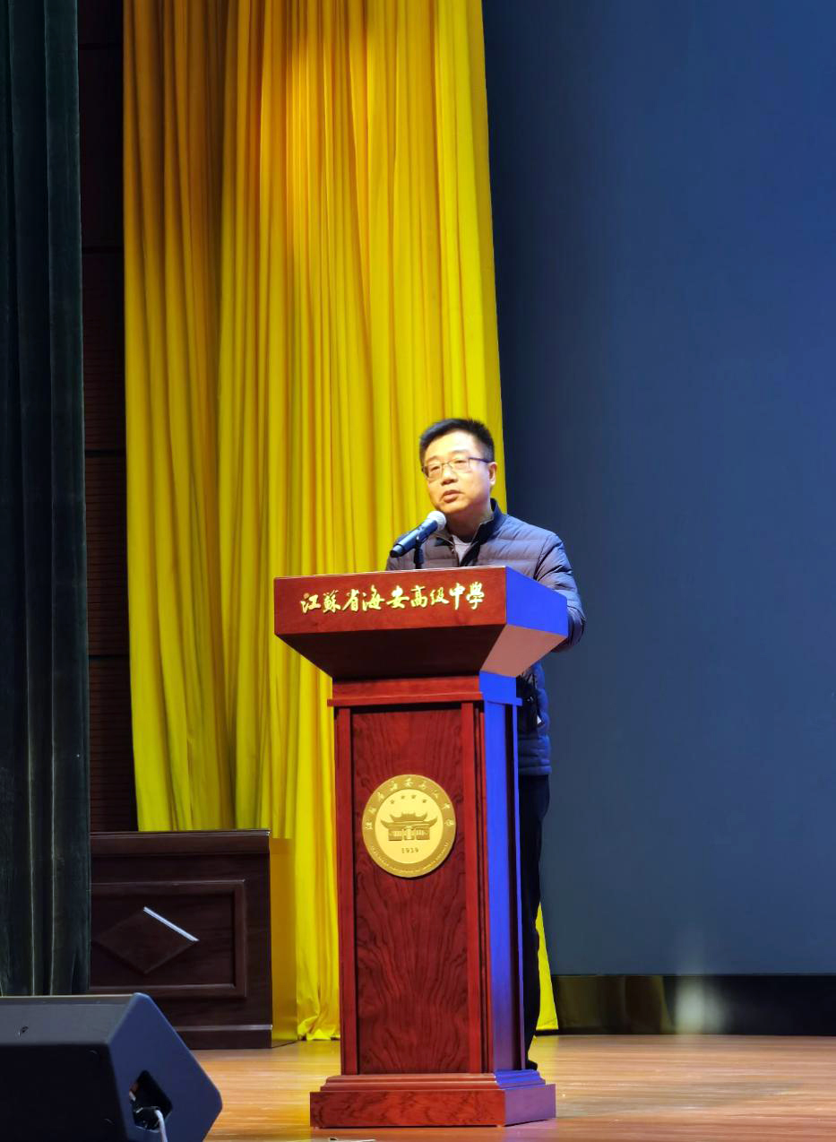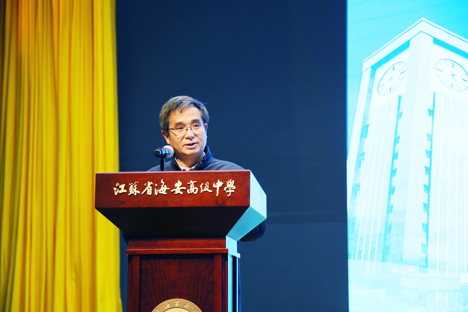 海中副校长杨斌致辞,首先对专家、老师们的到来表示热烈欢迎,同时为大家介绍了海安中学多年来教育教学的理念和做法,学校文化和办学业绩,对“双减”政策和“五育”融合进行深度解读,同时杨校长还介绍海安中学创办高品质示范高中和近年来学校跨越式发展的情况。最后杨校长对长期为海中输送优秀学生的初中化学老师表示感谢,并预祝本次培训研讨活动取得圆满成功。