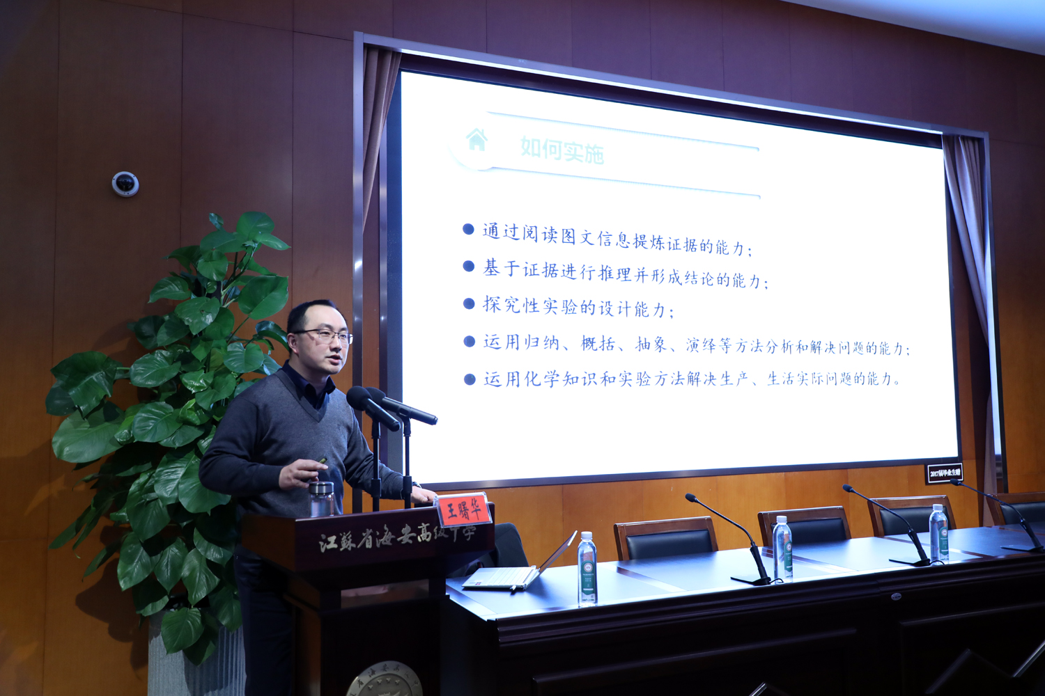 南通市教科院化学教研员王曙华为初中教师作了“教学转变与试题设计”的专题讲座。