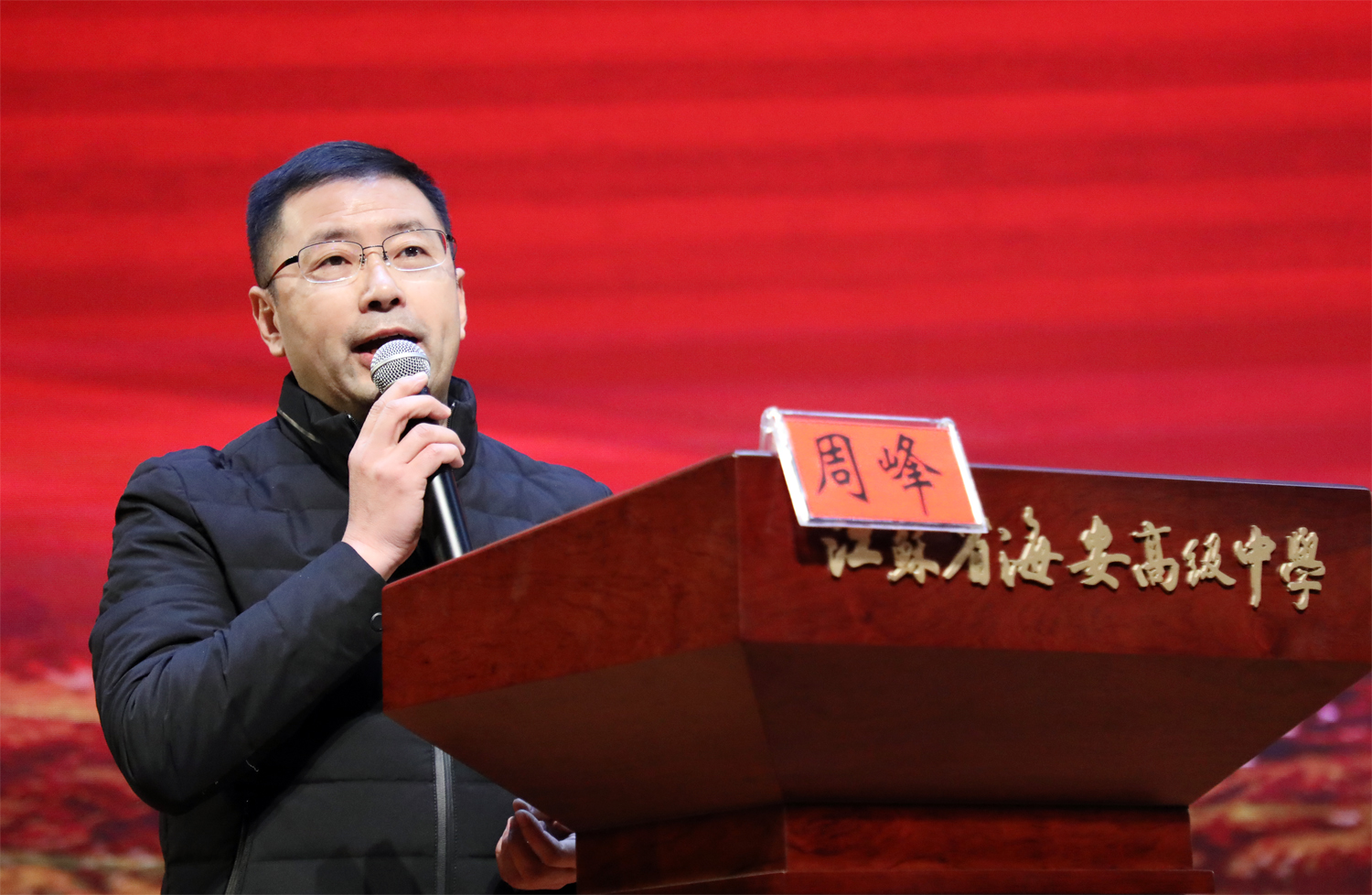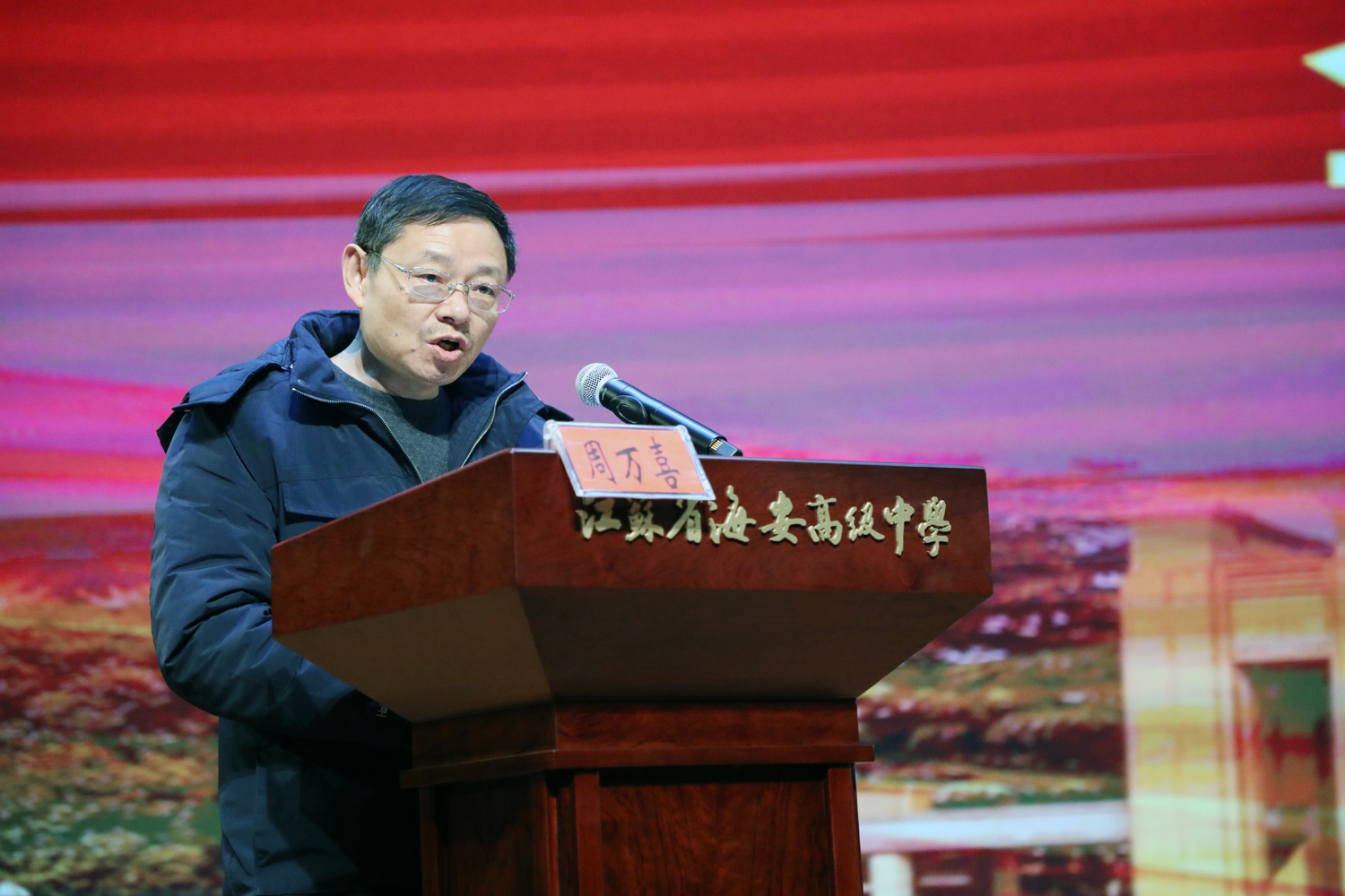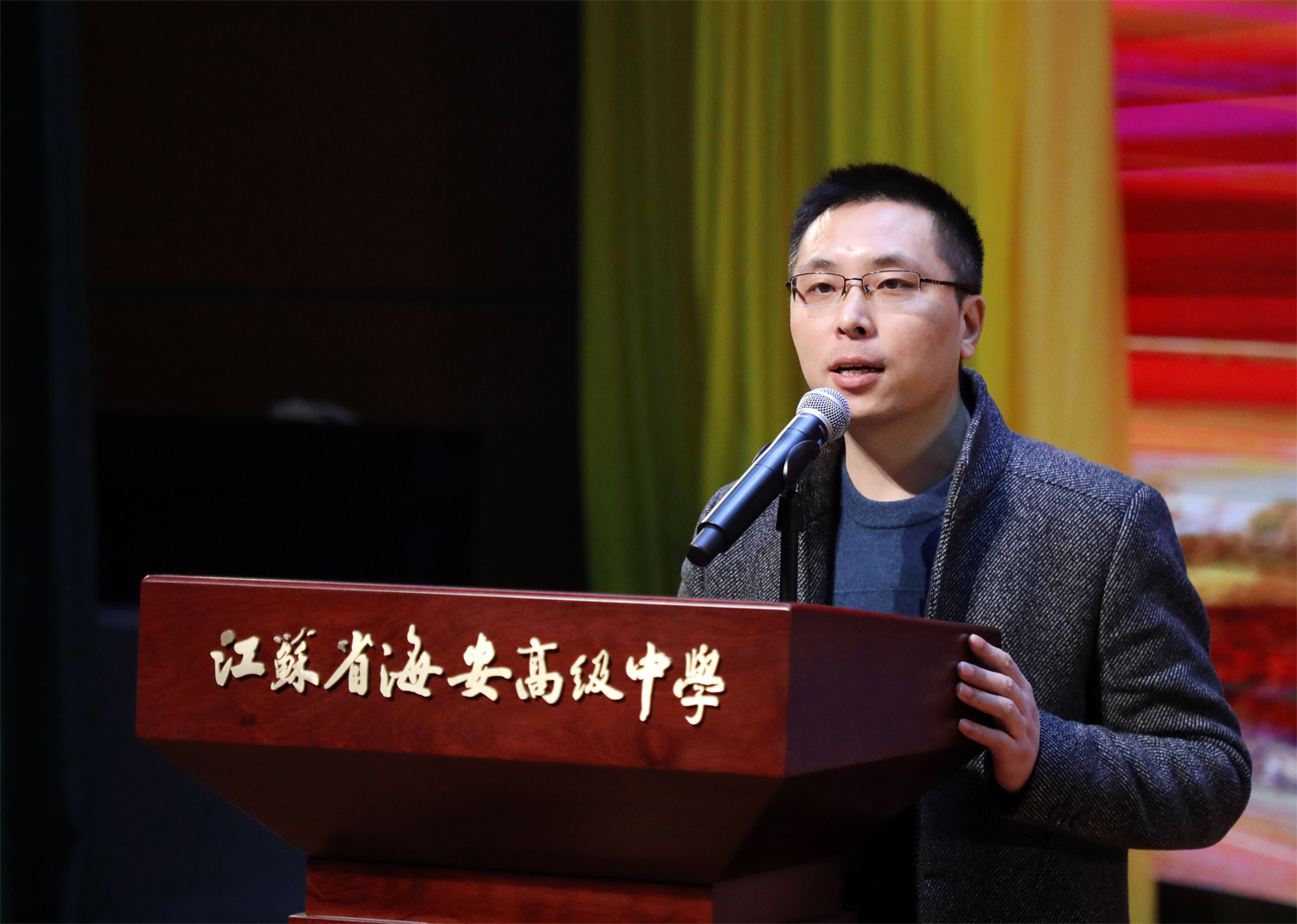 海安市高中语文教师全员培训在我校博雅剧场圆满举行。培训研讨活动由市教师发展中心高中语文研训员许思明主持,海安市全体高中语文教师参加了培训研讨活动。
