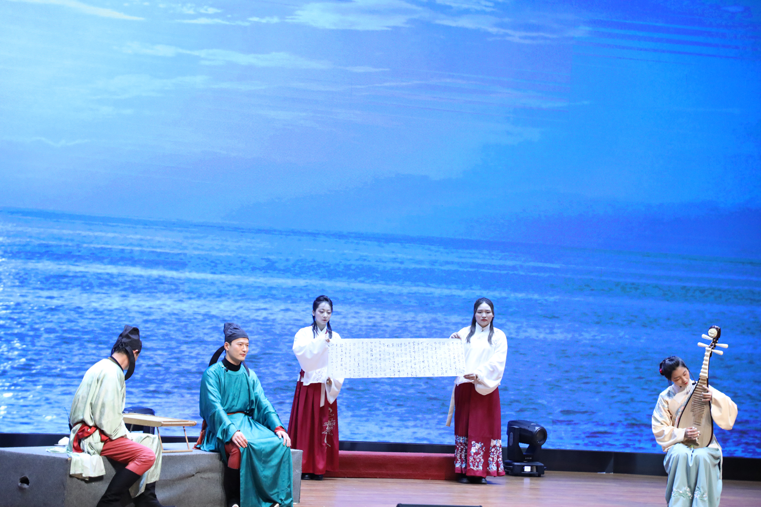 本次活动安排的高中语文情境下的教师才艺展示精彩纷呈,《生僻字》《与妻书》《将进酒》《清平调》《琵琶行》……歌声、舞姿、吟诵、弹奏……或生动俏皮,或唯美动人,或恢弘大气,或真情流露,充分彰显了海安高中语文人特有的魅力。