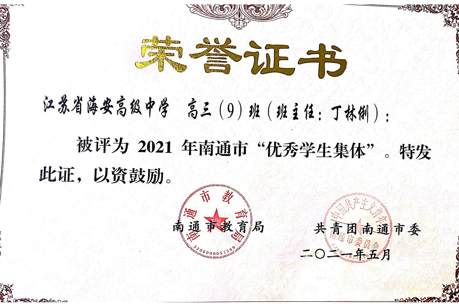 ▲我校党委获评海安市先进基层党(工)委