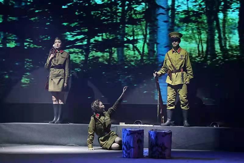 “你再看这几张,能想象出来都是高中生演的话剧吗?”吕建说的照片是来自学生版话剧《寻找李大钊》《这里的黎明静悄悄》《红岩魂》等的剧照和海报,舞台上的演员神情到位,感情饱满,表演也极具张力。