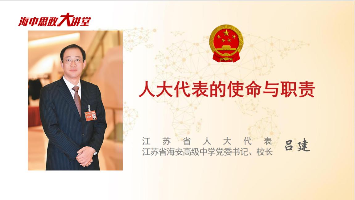 吕建校长先后担任1届海安县人大代表,2届南通市人大代表,2届江苏省人大代表,对中国共产党领导下的人民代表大会制度有着深厚的情感和丰富的履职体验。