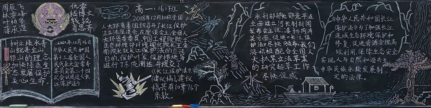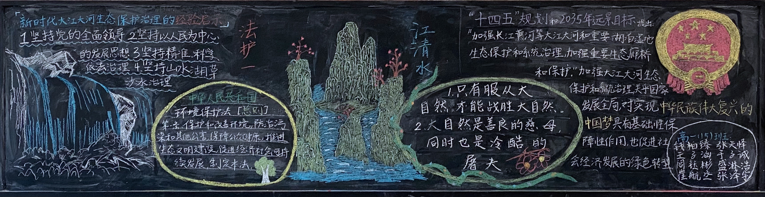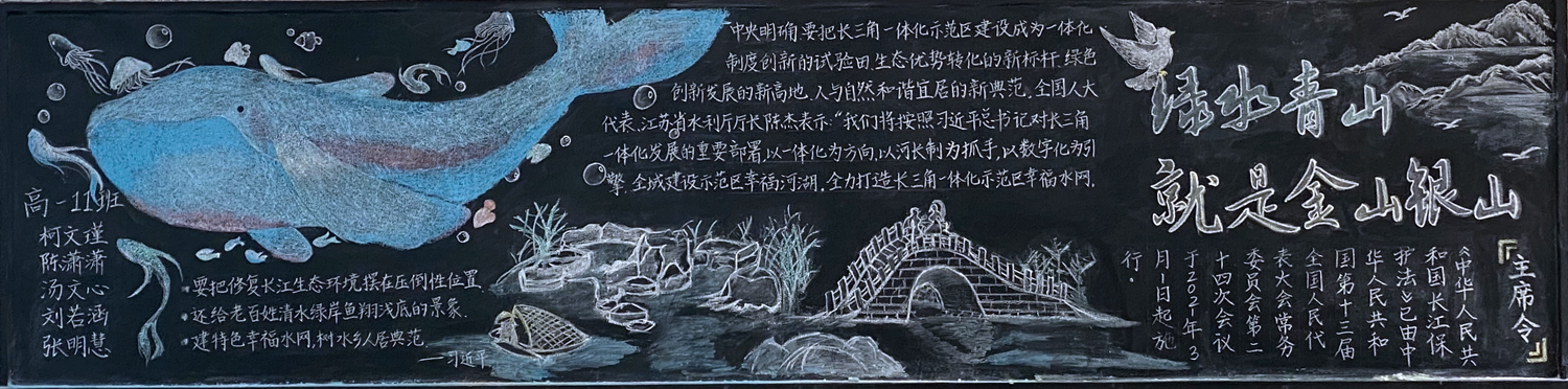 通过此次黑板报的绘制,我们充分意识到了长江大保护与每一个人休戚与共,保护长江流域的生态环境我们义不容辞。