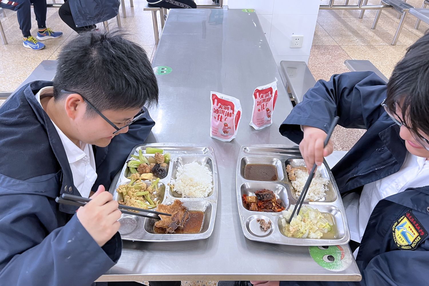食堂大厅,有他们享受美味的喜悦。他们选择自己喜爱的饭菜,光盘行动是对食堂师傅最好的感恩。