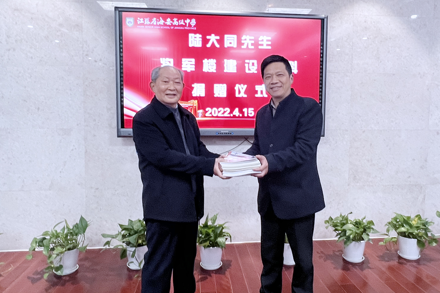 吕建校长对陆大同先生持续助力我校“将军楼”红色课程基地建设的付出表示感谢。陆大同先生表示,作为一位老党员,助力海安中学将红色资源转化为育人课程资源,既是自己义不容辞的责任和使命,也是自己迎接党的二十大胜利召开的实际行动。