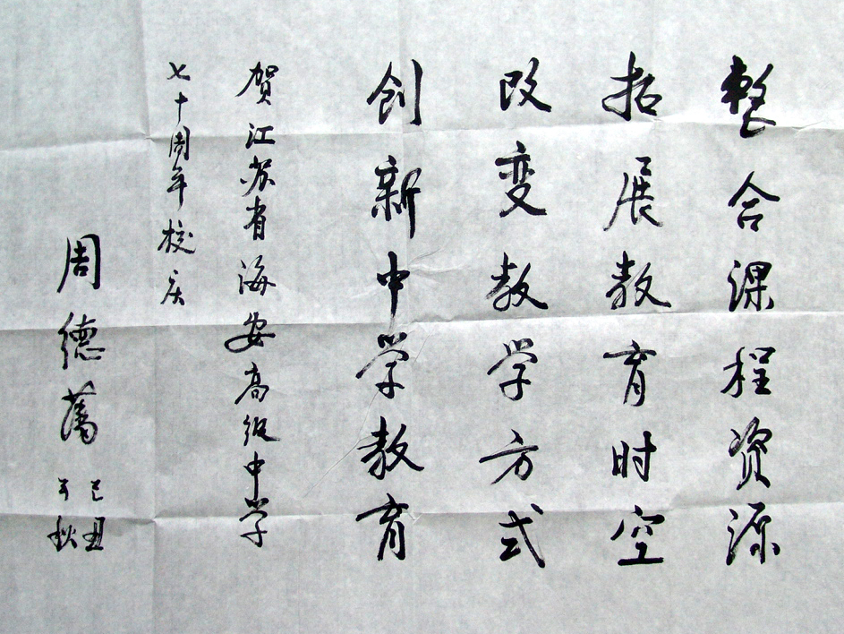 周德藩为我校70校庆题词