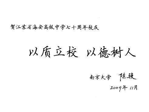 南大校长陈骏为我校70校庆题词